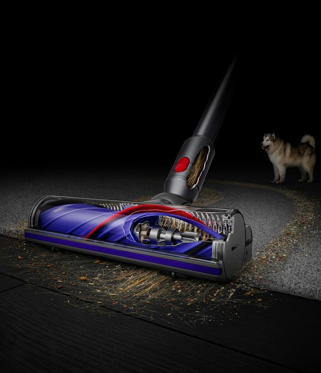 The Dyson V8 Extra cordless vacuum is engineered with the power, extra tools, and run time to clean homes with pets. Dyson’s de-tangling Motorbar™ cleaner head deep cleans carpets and hard floors with hair removal vanes that clear long hair and pet hair from the brush bar as you clean. The innovative Hair screw tool with a conical brush bar is perfect for cleaning upholstery and pet beds. The Dyson V8 has advanced, whole-machine filtration that captures pet allergens and fine dust and expels cleaner air. Thanks to the cordless format, it also transforms into a handheld vacuum with one click so you can clean up high, down low, and everywhere in between. Comes with a 2-year limited warranty and lifetime Dyson support.