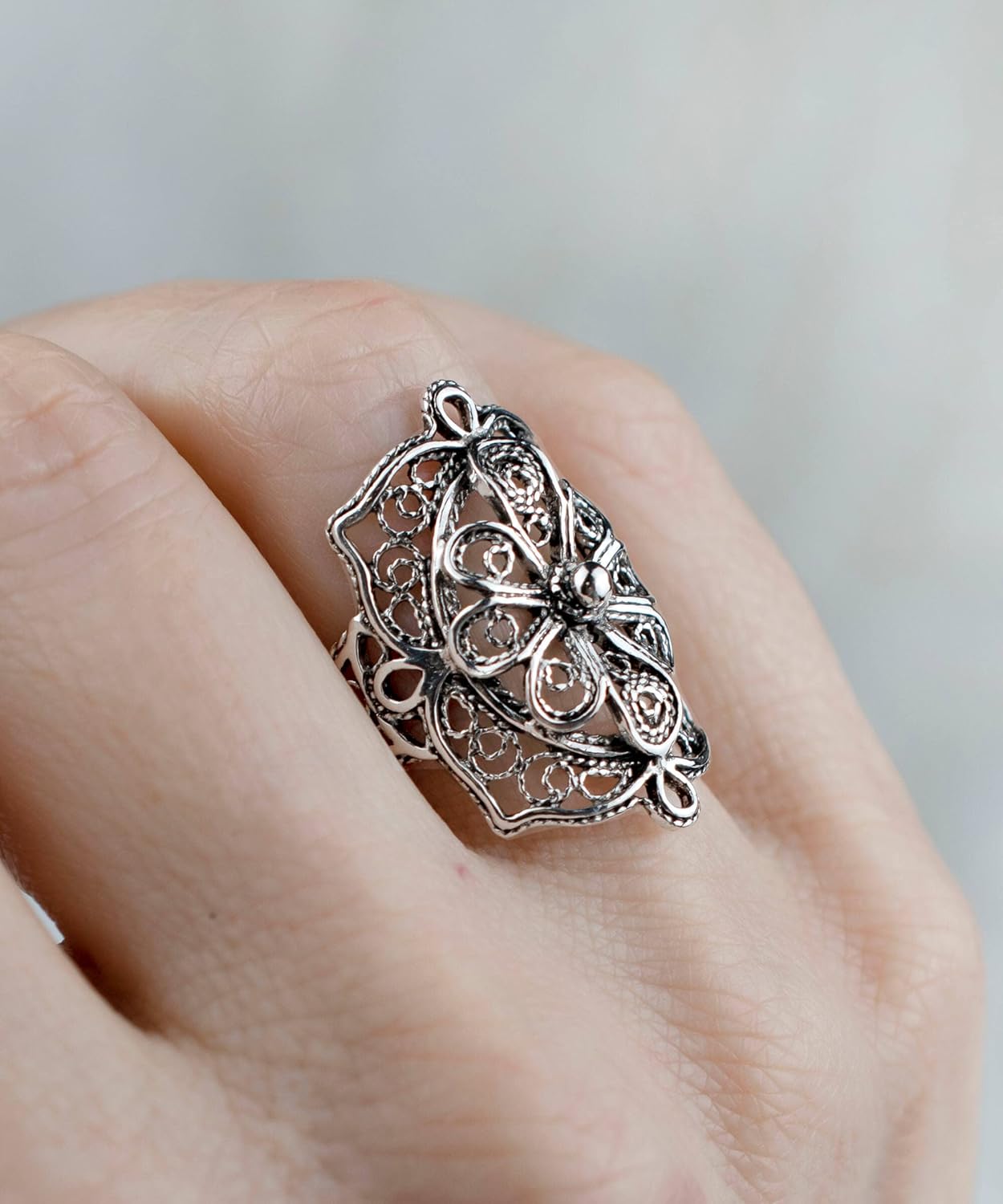 Elevate your style with our Filigree Art Sterling Silver Statement Ring
