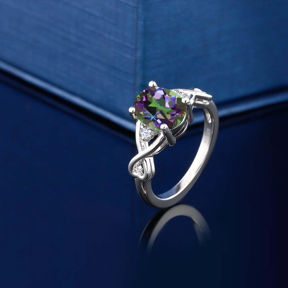 Gem Stone King 1.89 Cttw Green Mystic Topaz 3-Stone Engagement Ring for Women | 925 Sterling Silver | Oval 9X7MM and Round 1.8MM | Gemstone Birthstone | Available In Size 5, 6, 7, 8, 9