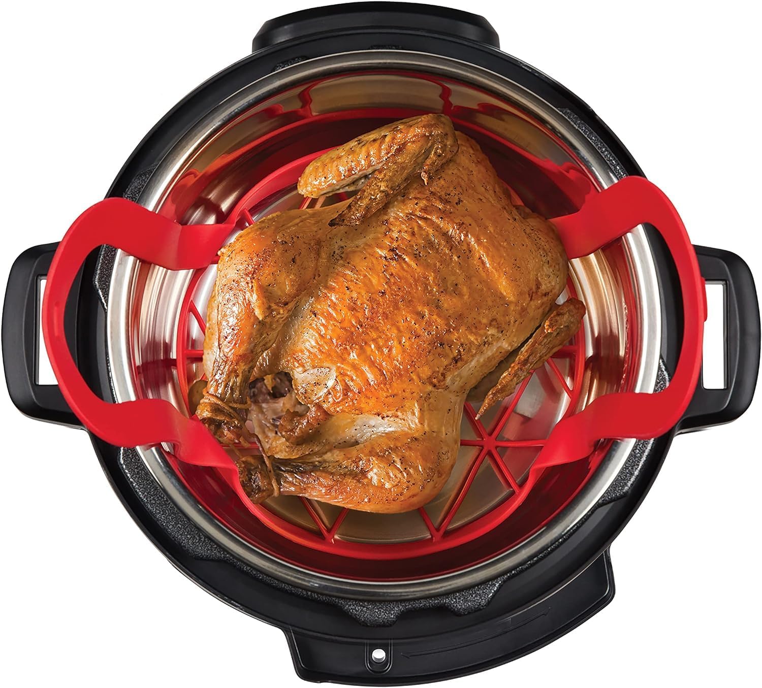 Instant Pot Official Round Cake Pan, 7.7-Inch, Gray: This Instant Pot Official Round Cake Pan is specially designed for use in Instant Pot pressure cookers! Cook & bake foods to perfection in this essential pan. In addition to cooking & baking, you can also use this durable pan to store and reheat, safe to go right from the freezer to your Instant Pot! Compatible with 6-quart & 8-quart cookers, plus 10-quart Vortex Air Fryer and Duo Crisp. Instant Pot Official Bakeware Sling, Compatible with 6-quart and 8-quart cookers, Red: This versatile sling is an Instant Pot pressure cooker essential accessory! Easily lift foods from your Instant Pot using this official silicone bakeware sling, specially designed for use in Instant Pot pressure cookers. Its smart design features secure-lock handles that neatly tuck under the lid of your Instant Pot while cooking. Place pan in the sling before adding to Instant Pot to ensure safe, effortless removal after cooking. You can also use the sling on its own as a rack for roasting meat, fish & vegetables directly in your Instant Pot. Fats, oils & grease are drained away from food while roasting, making meals more healthy and delicious. Made from BPA-free silicone, This sling is heat resistant up to 450° F (232° C) and dishwasher-safe for easy cleanup. Compatible with 6 quart & 8 quart Cookers.