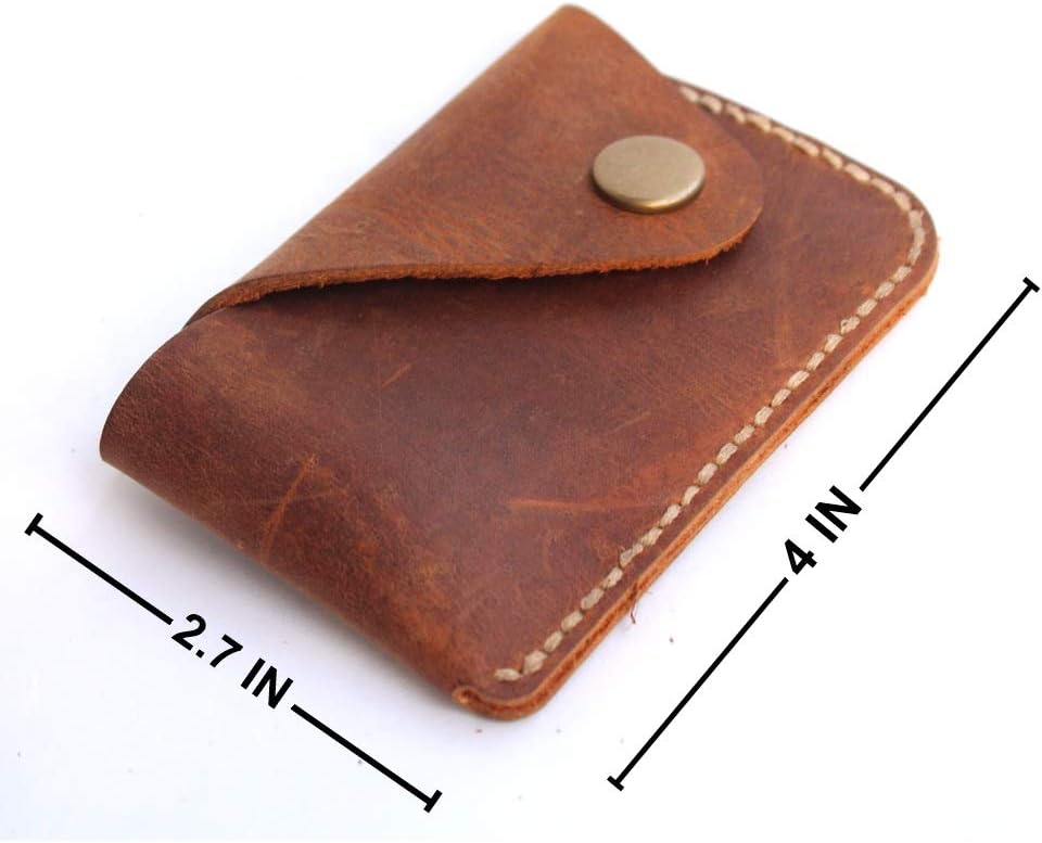 Handmade Genuine Leather Card Holder with Snap Closure – Ultra Slim Minimalist Wallet, Hand-Stitched Compact Front Pocket Card Case for Men & Women (Brown)