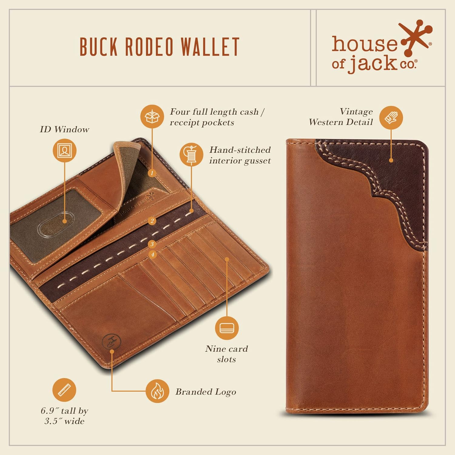 House of Jack Co. Buck Long Bifold Wallet for Men and Outdoorsmen, Full Grain Cowhide Leather Rodeo Wallet, Tan