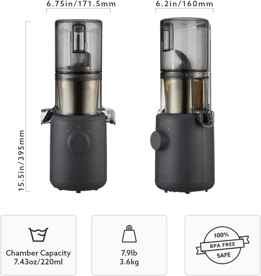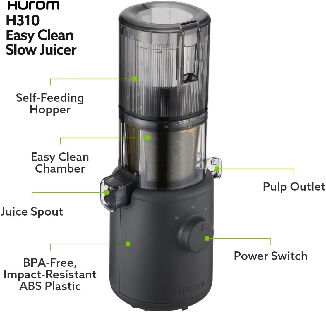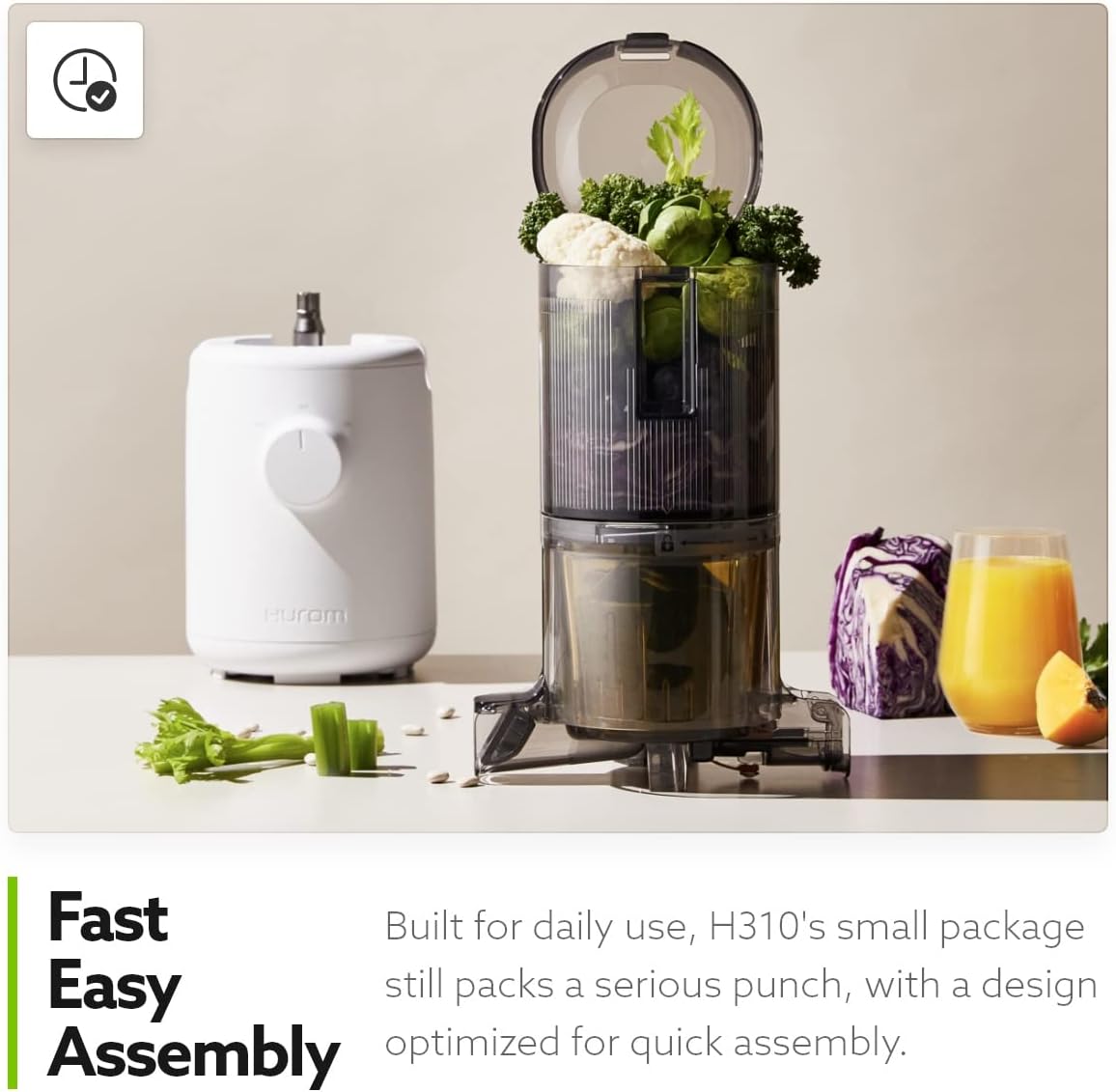 Hurom H310A Renewed Personal, Self Feeding Slow Masticating Juicer – White | Easy-Clean, Max Yield, Quiet Motor – Hopper Fits Whole Produce – BPA Free
