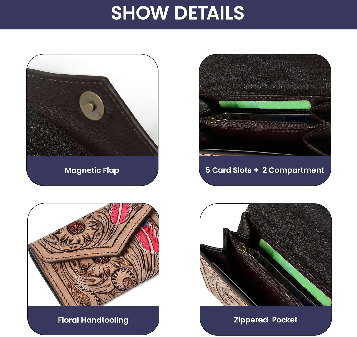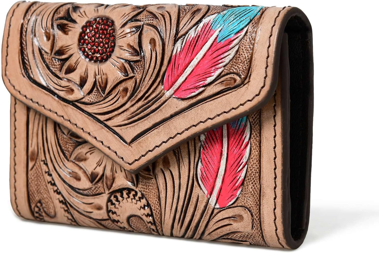 Experience the charm of vintage craftsmanship with the Merbaa Western Tooled Purse for Women. This trifold-style purse is beautifully embossed with floral and basket weave patterns that reflect the art and heritage of Western design. Perfectly functional for everyday use, this purse includes dedicated compartments to keep your essentials organized—from cards and cash to receipts. Its handcrafted detailing and stitched finish give it a distinct character, making it more than just an accessory—it’s a personal style statement. Use it as your daily wallet, a clutch for special events, or a compact travel organizer. Whether you’re dressing up or going casual, the Merbaa purse adds a rustic, artistic flair to any outfit.