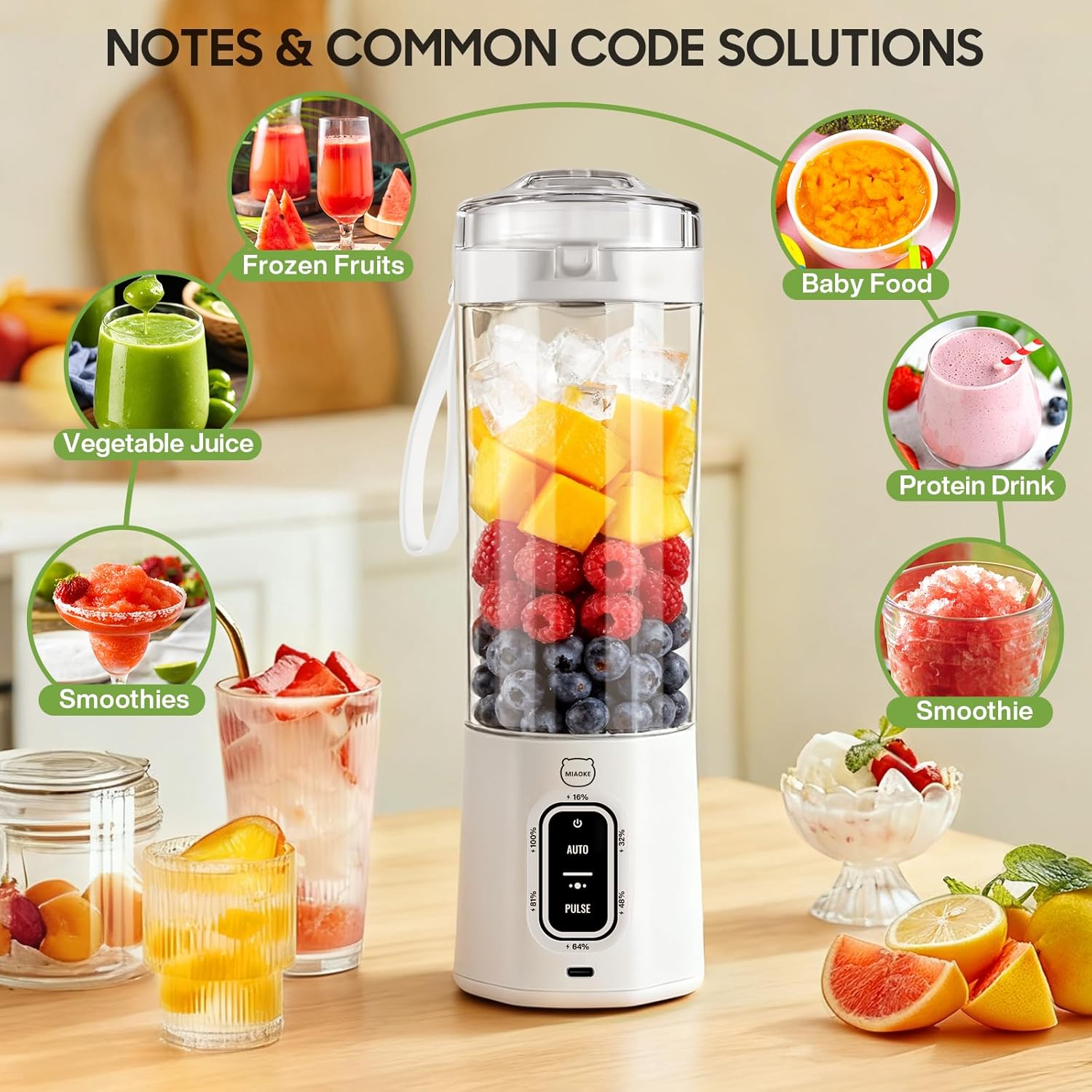 MIAOKE 2026 Upgrade 700 ML Portable Smoothie Blender, Rechargeable Personal Blende, Contains both Automatic and Pulse Functions, with Travel Cup and Lid, 6 Sharp Blades, Mixer Blender Machine Kitchen