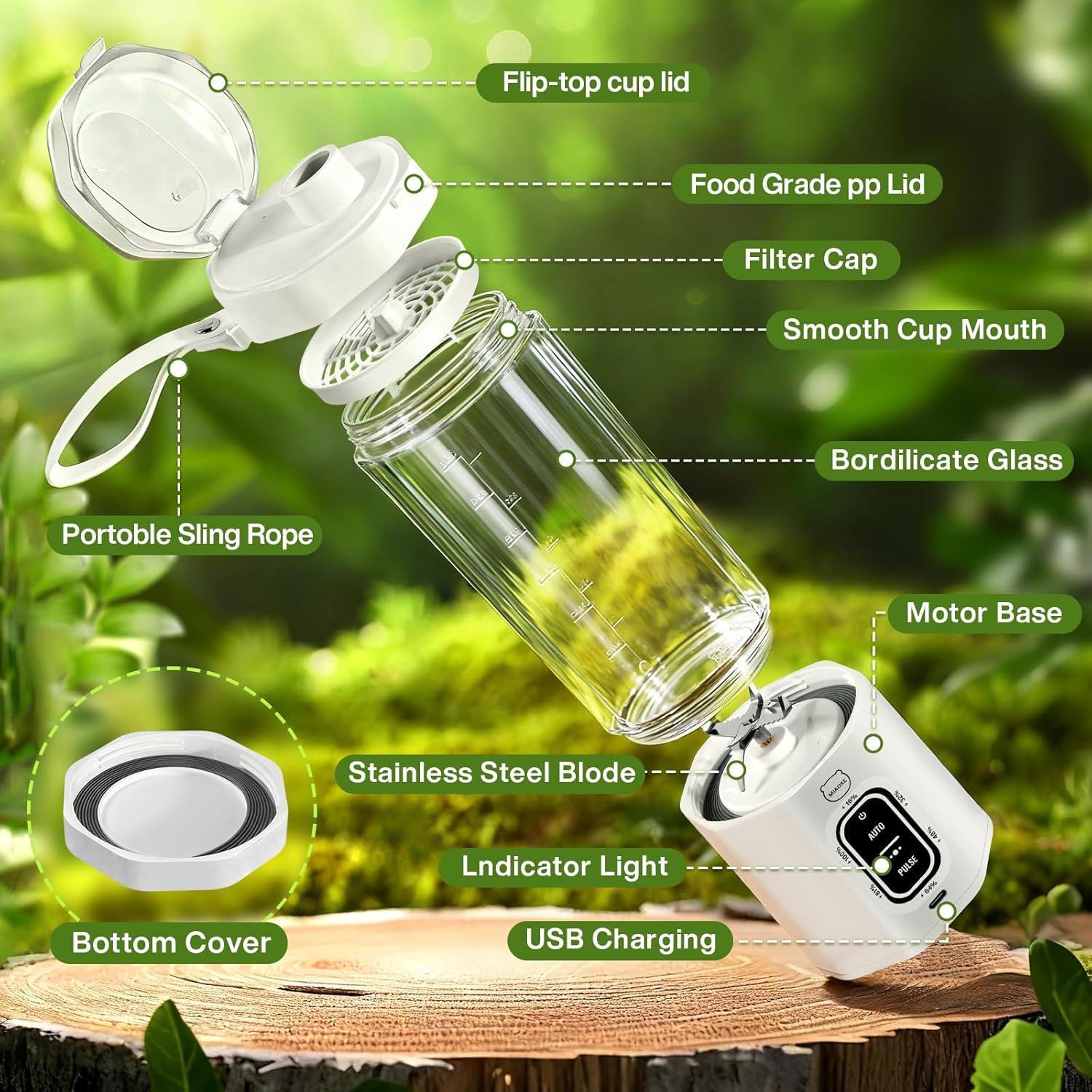 【Innovative Detachable Cup Jar】Our rechargeable blender for smoothies features a convenient detachable 700ml cup that transforms into a travel lid for use on the go. It easily disassembles into three parts: lid, cup and blender base, cleaning is a breeze as.easy to carry with, Ideal for any kitchen, office, outdoor, travel or sports.