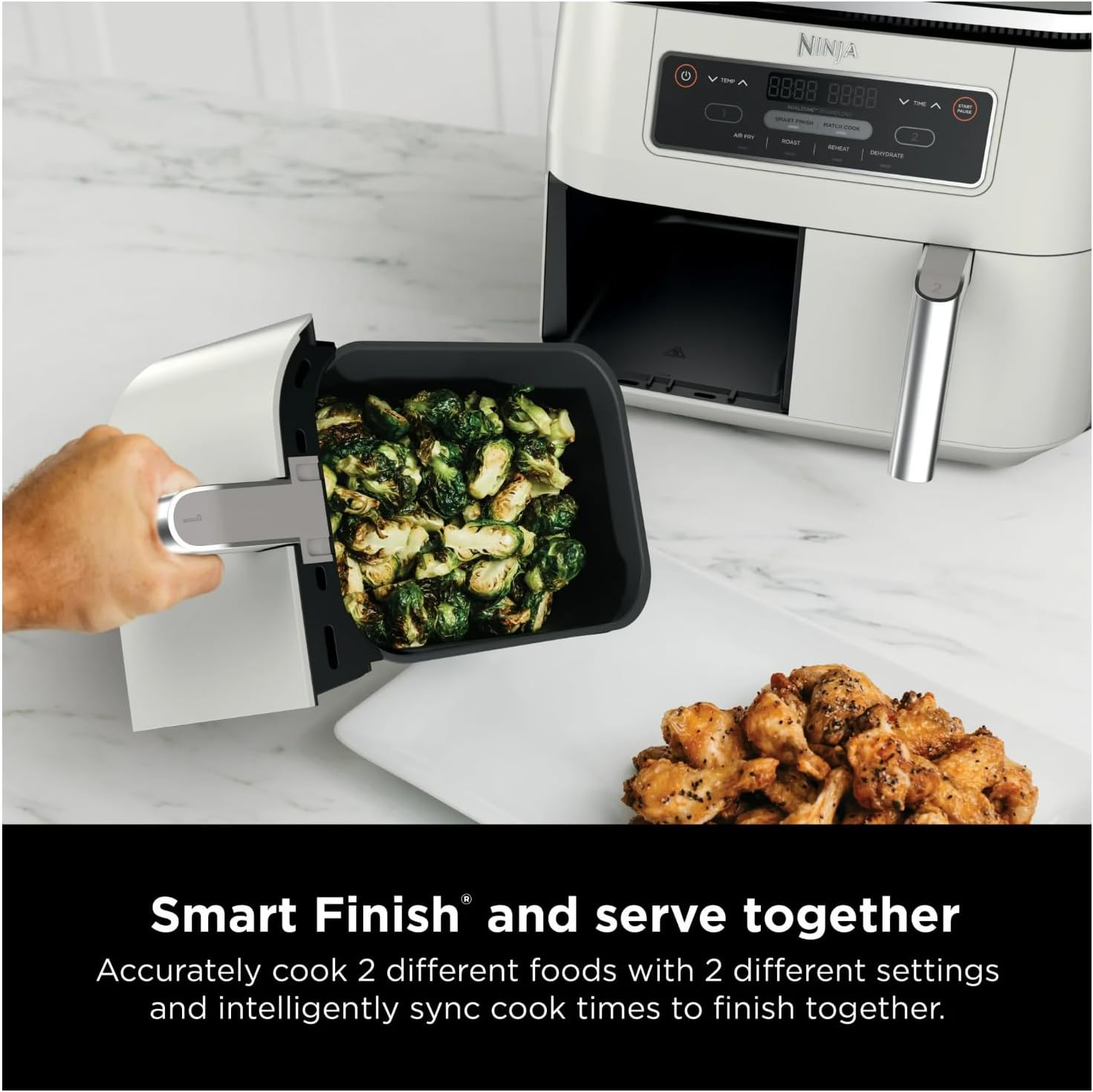 Ninja 4-in-1 Dual Basket Air Fryer with Smart Zone Divider – 8 Qt Family Size Capacity, Independent Temperature Controls & Digital Touch Panel – Air Fry, Roast, Reheat & Dehydrate Appliance