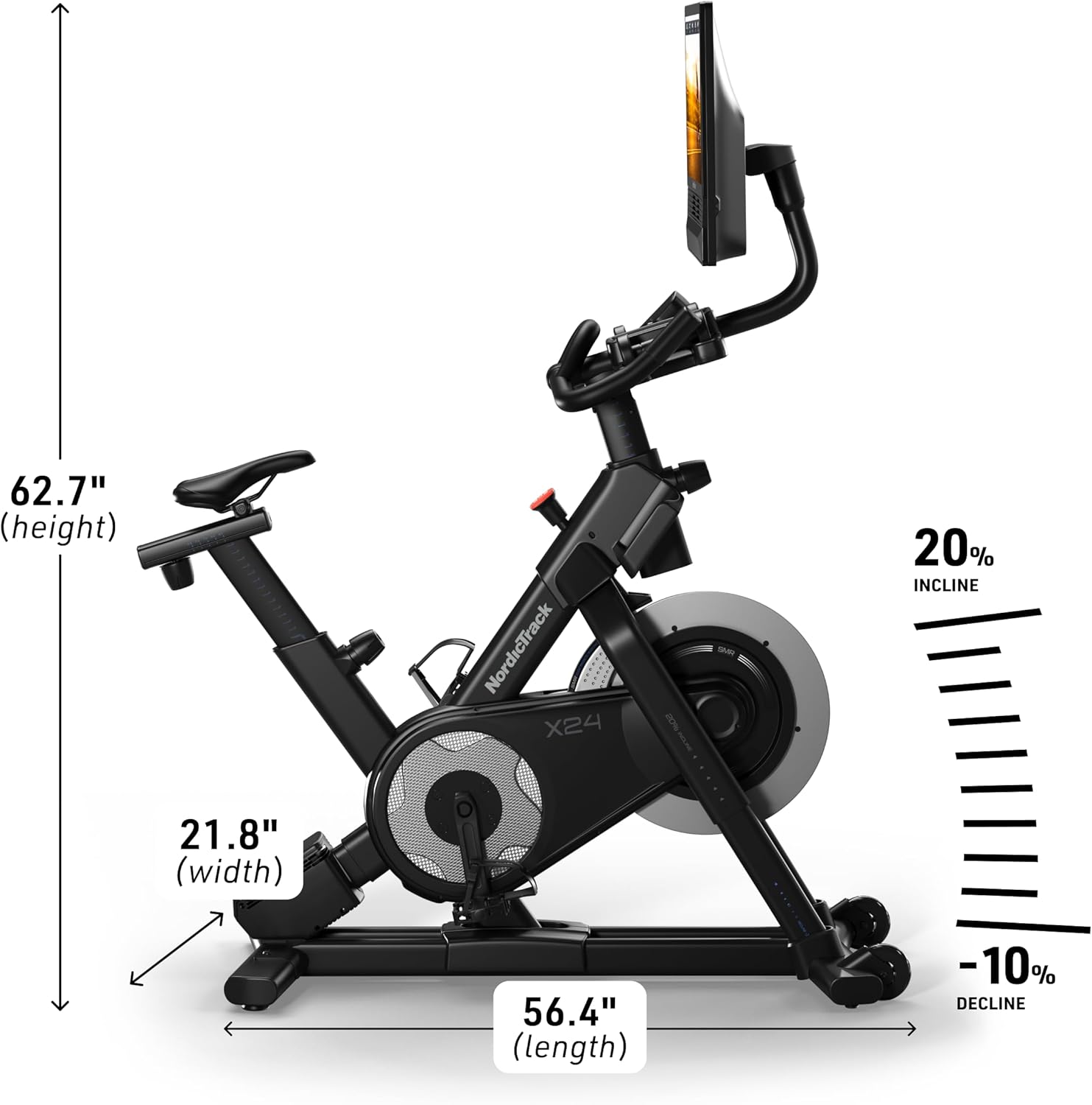 The NordicTrack X24 Bike and the iFIT Pro Membership boast technology that puts results within reach. iFIT tracks your performance and automatically changes your 20% incline to -10% decline range, and 24 resistance levels to exactly what you need, so every workout is personalized to you. The Silent Magnetic Resistance™ offers a smooth and quiet pedal rotation for a realistic cycling experience, so you’re better prepared to take your progress outside. iFIT is the world’s largest outdoor workout library, featuring over 10,000 workouts led by professional athletes and trainers. With iFIT, this bike is more than just a bike. It becomes an effective personal training tool for real results.