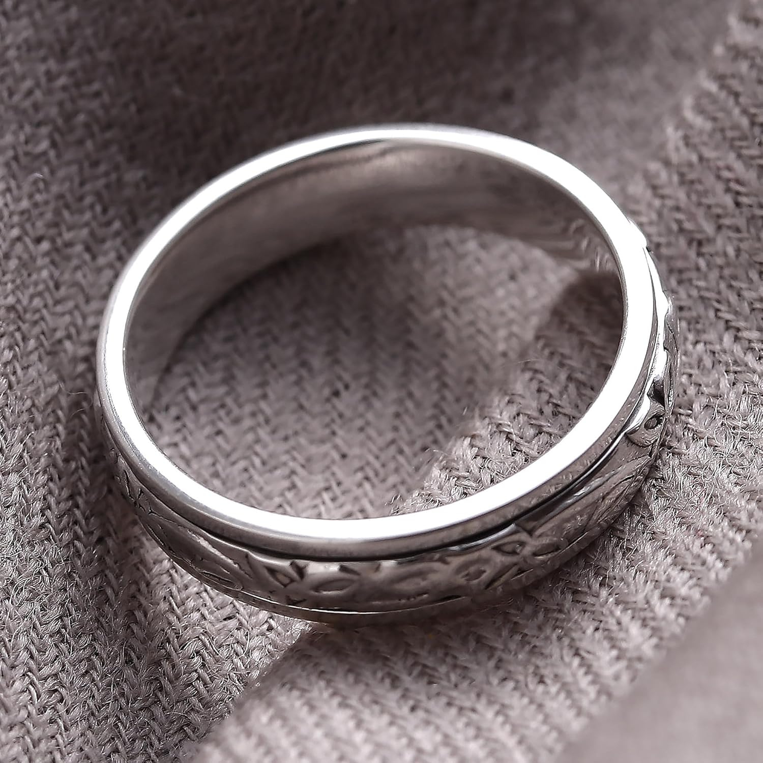 About this item: Petite leaves that capture the spirit of the forest spin around a simple band in this meditation ring from India. Following in the footsteps of his father, Bhavesh designs this spinner ring, working with local artisans to craft it from sterling silver with a shining appearance, Band width: 5 mm.