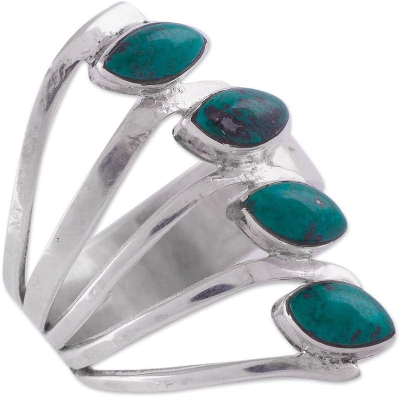 NOVICA Artisan Handmade Chrysocolla Multistone Ring 950 Silver Leaf from Peru Fine Green Gemstone Tree ‘Radiant Leaves’