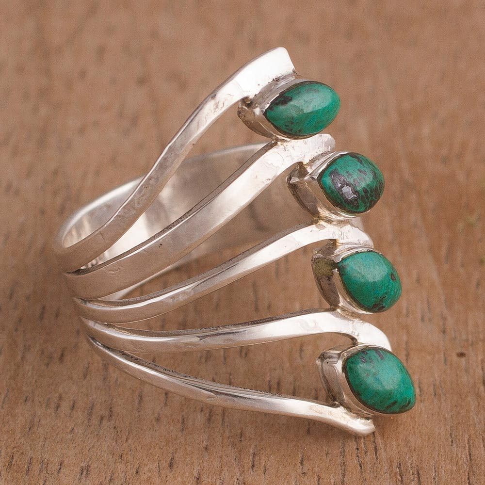About this item: Majestic green chrysocolla leaves gracefully adorn this multi-stone ring. Designed by artisan Bertha Vera of Peru, the eye-catching ring is crafted from 950 silver….