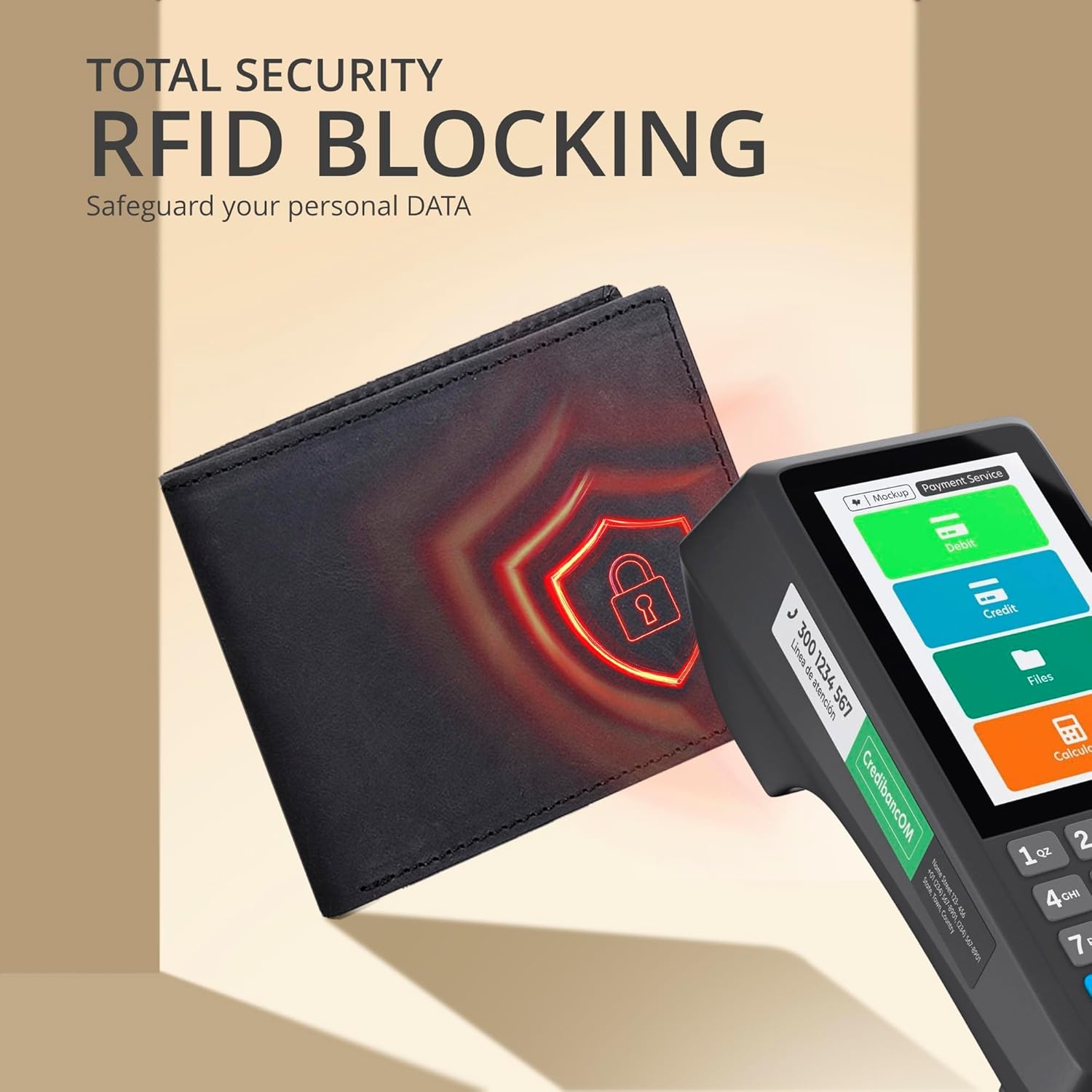 Rest assured as our bi fold leather wallets are equipped with advance RFID Blocking technology which protects your valuable information stored on RFID chips from unauthorised scans while you are on the go (specifically 13.56 MHz RFID / NFC standard). All our RFID slim Wallets are tested and approved to keep you and your data safe.