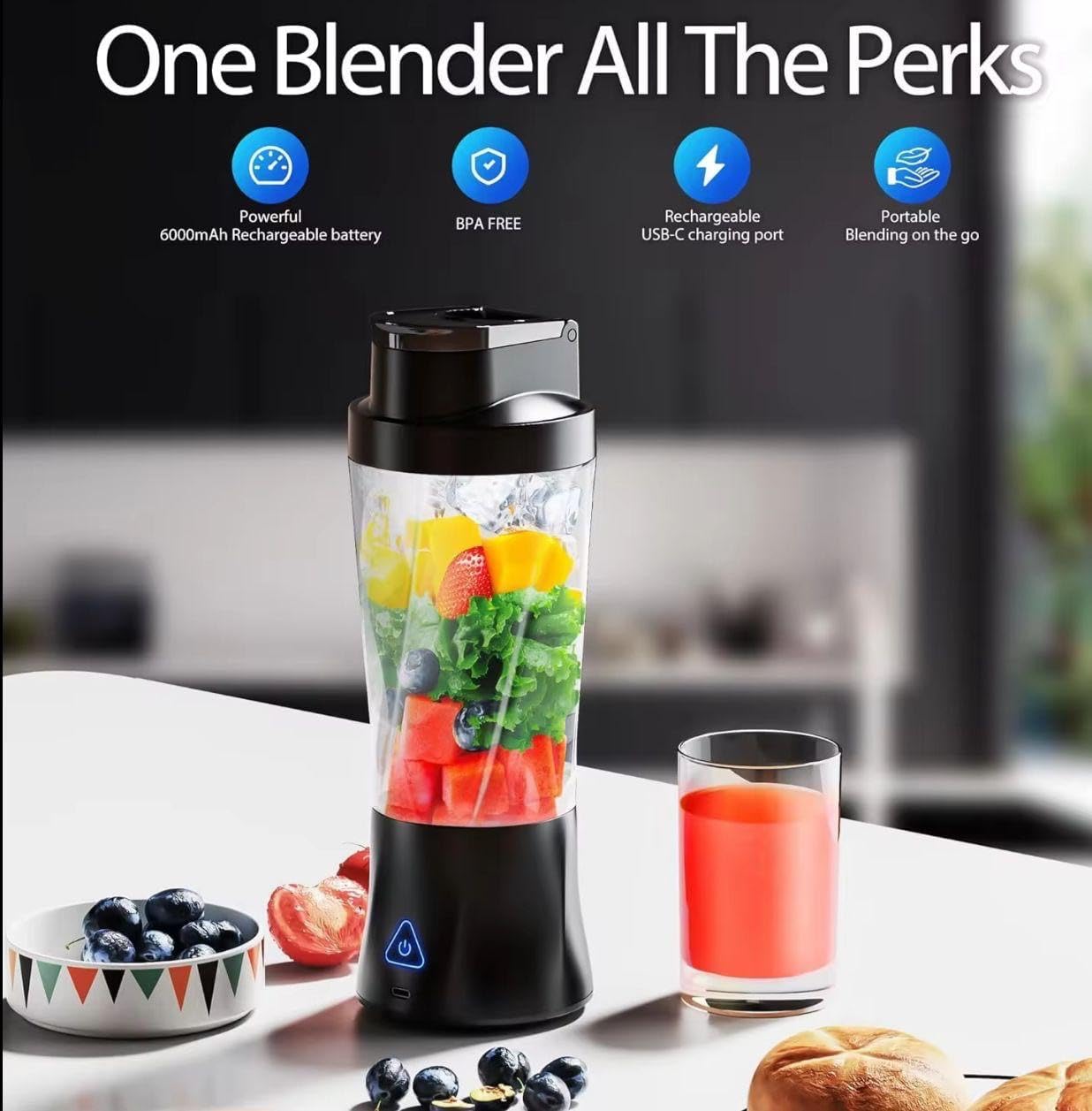 Enjoy fresh smoothies and shakes anywhere with our 700ml (24oz) Portable Blender. Featuring a high-speed motor and sharp stainless steel blades, it easily blends fruits, vegetables, protein shakes, and ice in seconds. The USB rechargeable battery offers long-lasting power with up to 20 uses per charge, making it perfect for travel, gym, office, or outdoor activities. Lightweight and compact, this mini blender is designed for convenience without sacrificing capacity. Built with BPA-free, food-grade materials and stainless steel blades for safe and durable performance. Easy to clean with self-cleaning mode—just add water, blend, and rinse. Take your nutrition on the go and enjoy healthy living anytime, anywher