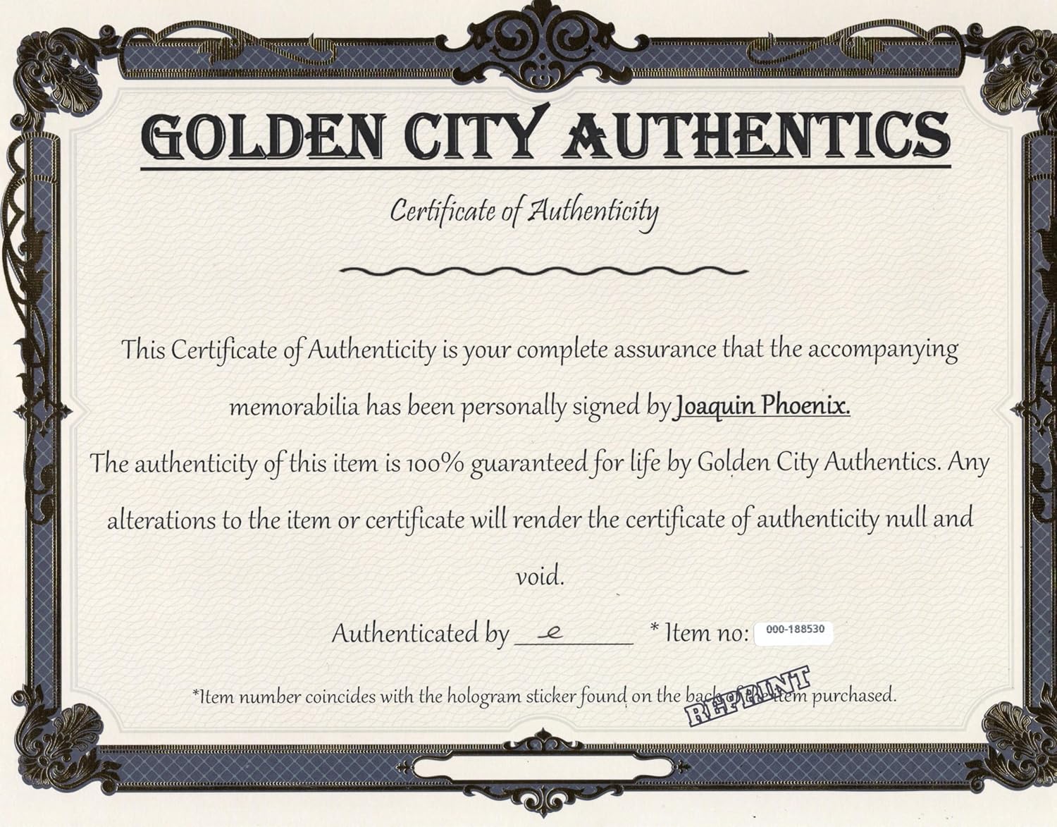 This Joaquin Phoenix 8×10 Reprint comes with a copy of the original Certificate of Authenticity! (a printed copy)