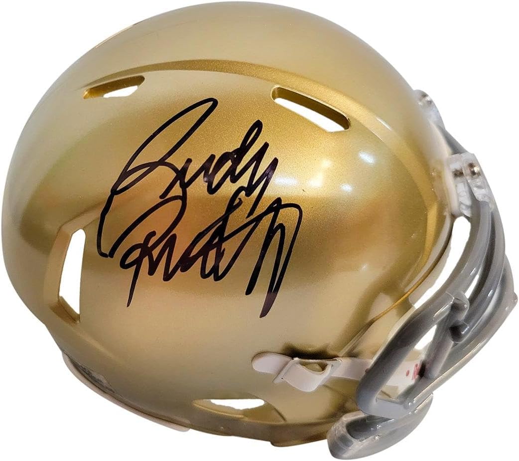 For your football fanatics! This Notre Dame autographed football mini helmet has been personally hand signed by Rudy Ruettiger and authenticated by a leading authentication company. All autographed football collectibles come with tamper proof sticker to verify authenticity and a quality guarantee.