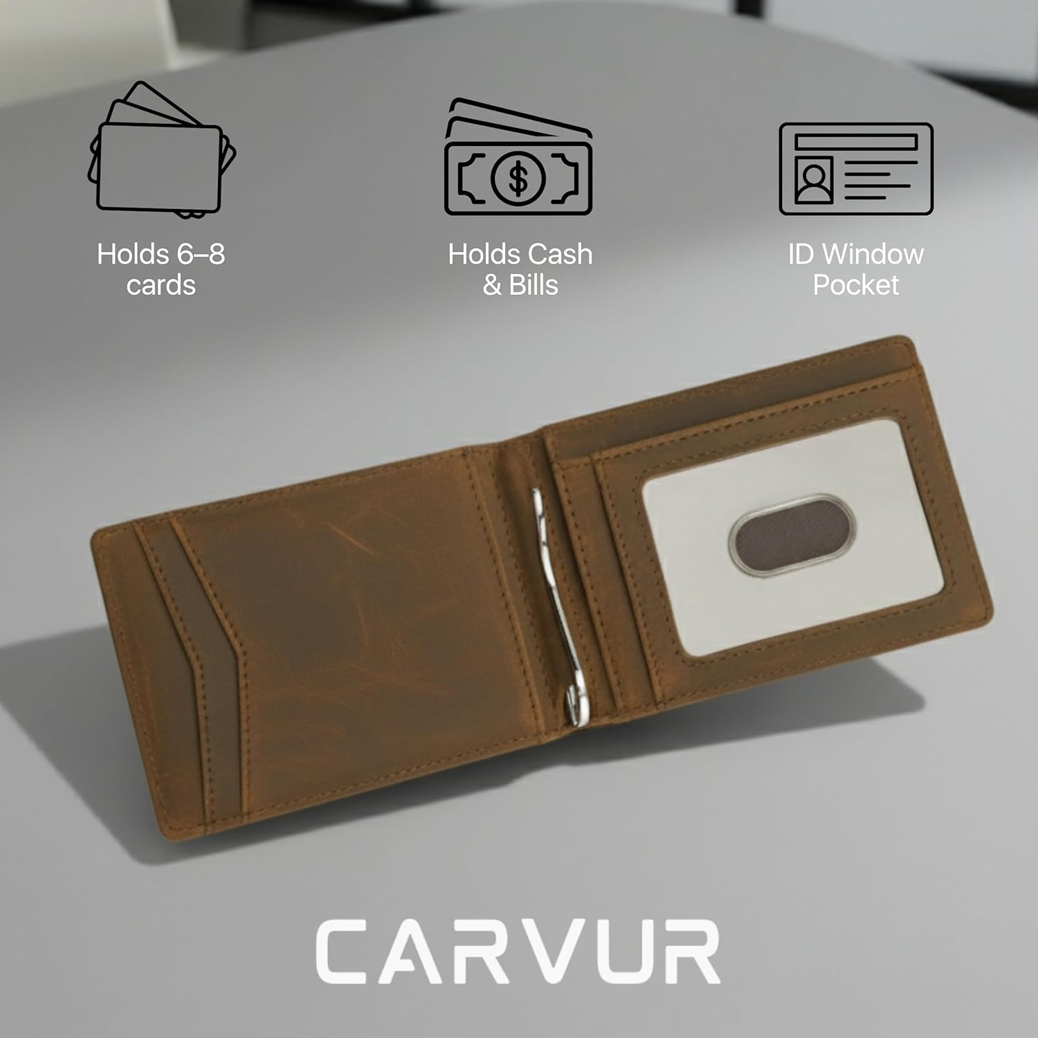 Slim Bifold & Money Clip – Combines minimalist bifold design with a built-in money clip for secure, organized cash carry.