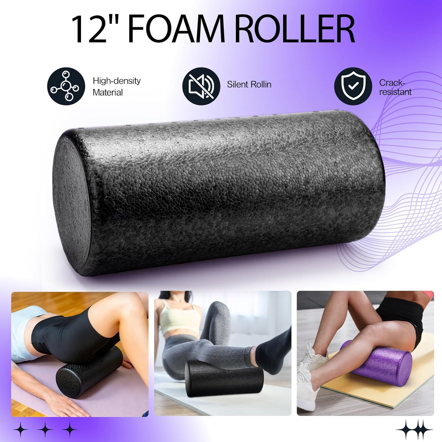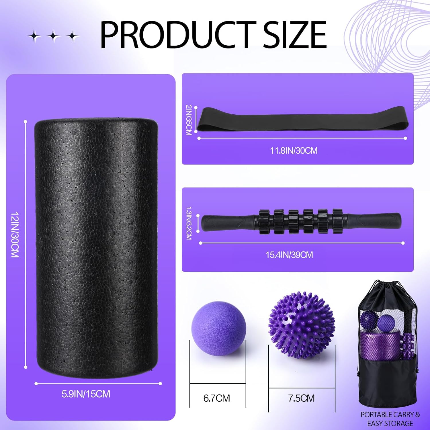 6 in 1 Foam Roller Set: this comprehensive muscle recovery kit includes back roller, muscle roller stick, massage ball, fasciitis ball, fitness stretching strap, and carrying bag for complete body exercise recovery
