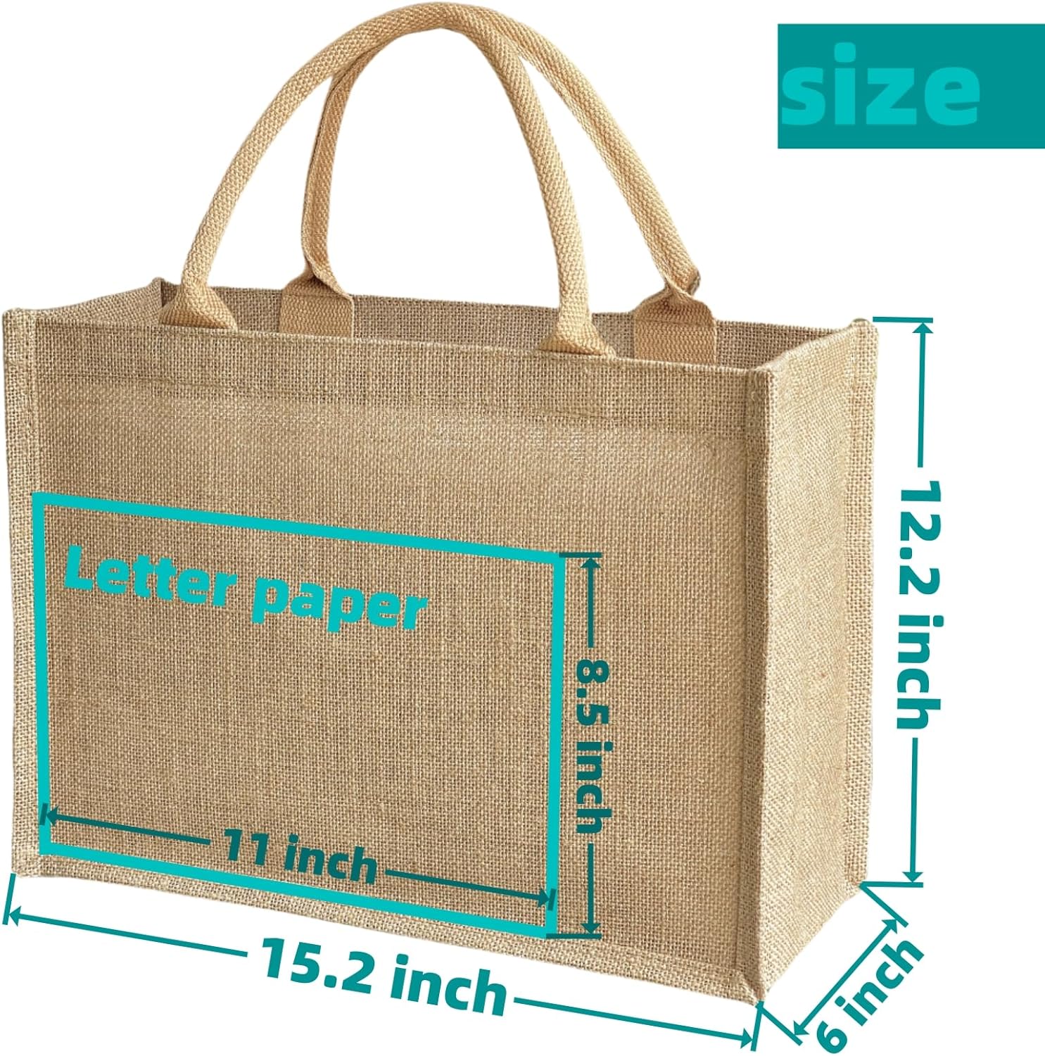 15 Pcs Jute handbag burlap tote bags Travel holiday Wedding Bridesmaids welcome bags Party Holiday Women’s gifts Handmade linen DIY reusable beach sundries storage bag 15.2 x 12.2 x 6 inch