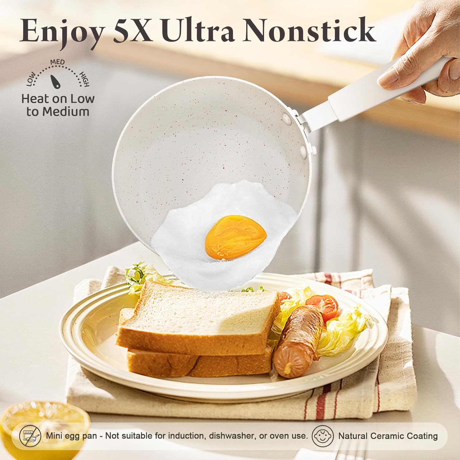 Caution: Mini egg pan – Not suitable for induction, dishwasher, or oven use.