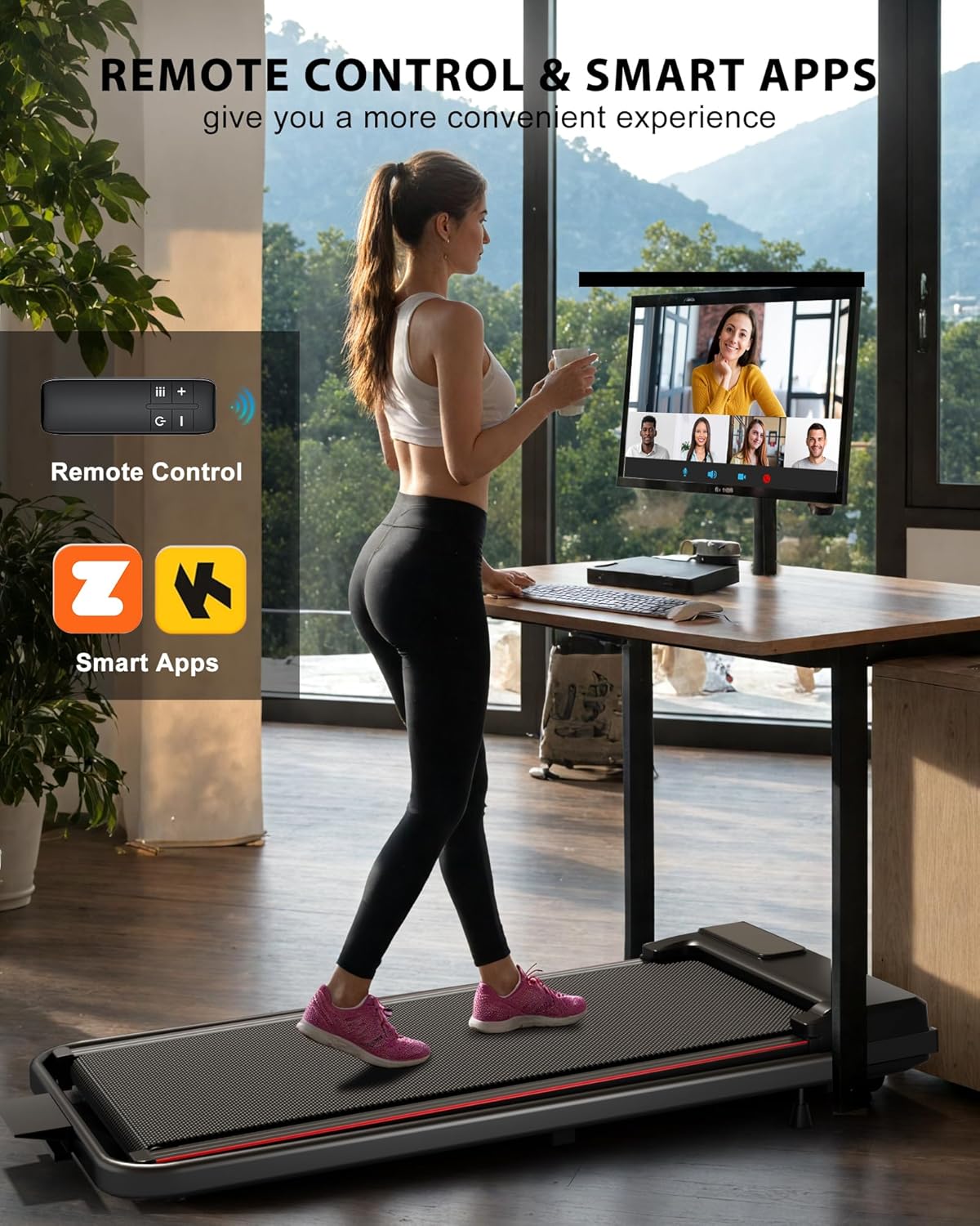 ***【Manual/Countdown/App Mode】***portable walking pad treadmill comes with an LED Display, the speed, distance, time, and calories in real time. You can choose the running mode via fitness apps or remote control. ***Add 3 Preset Countdown Modes*** You can use the remote control to select the time/distance/calorie countdown preset program to execute your fitness plan when you don’t want to connect to the fitness app