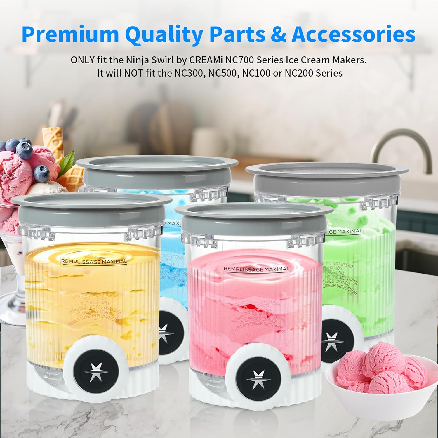 4 Pack Creami Pints and Lids for Ninja NC700 NC701 Series