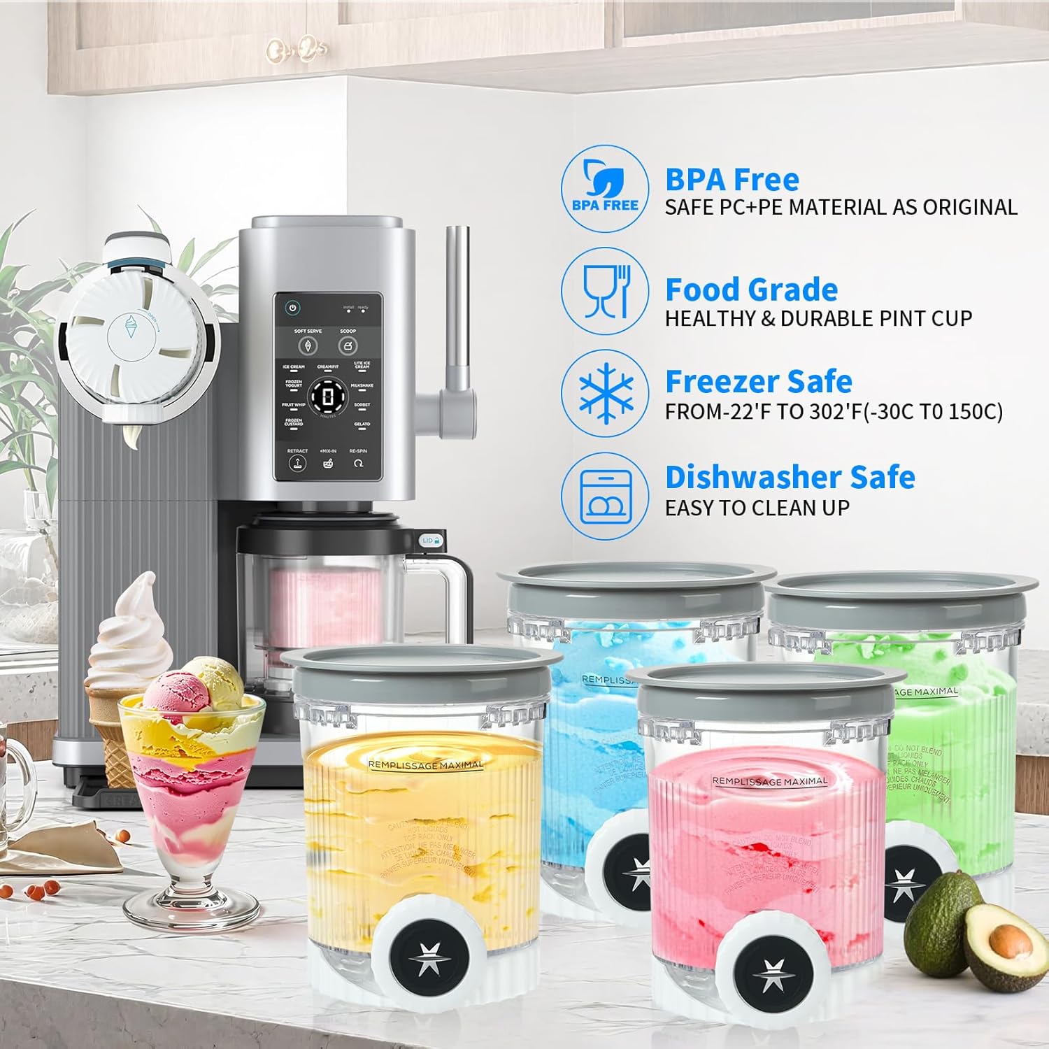 【Durable, Premium quality】Durable and sturdy pints are made from food-grade, BPA-free materials. The ice cream tub is polypropylene & the lid are made of 100% food grade silicone.Upgraded sealing lids help store frozen food freshness and prevent spills or leaks. Easily transforms to a soft, creamy texture in just minutes.