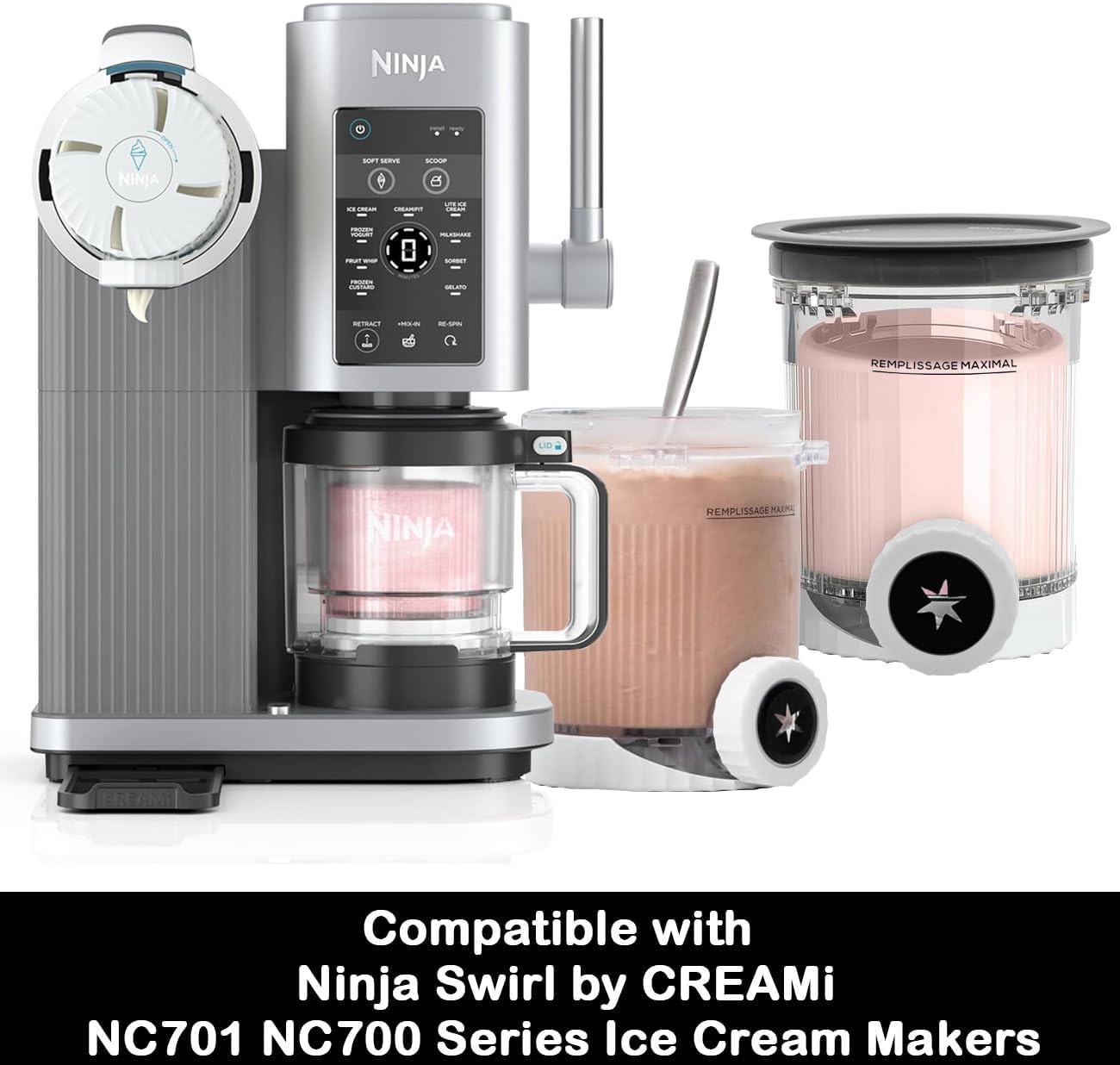 🔄 COMPATIBLE WITH NINJA NC700 SERIES: Replacement 4-pack pints and lids designed for optimal performance with Ninja Swirl Creami NC700 Series ice cream makers.