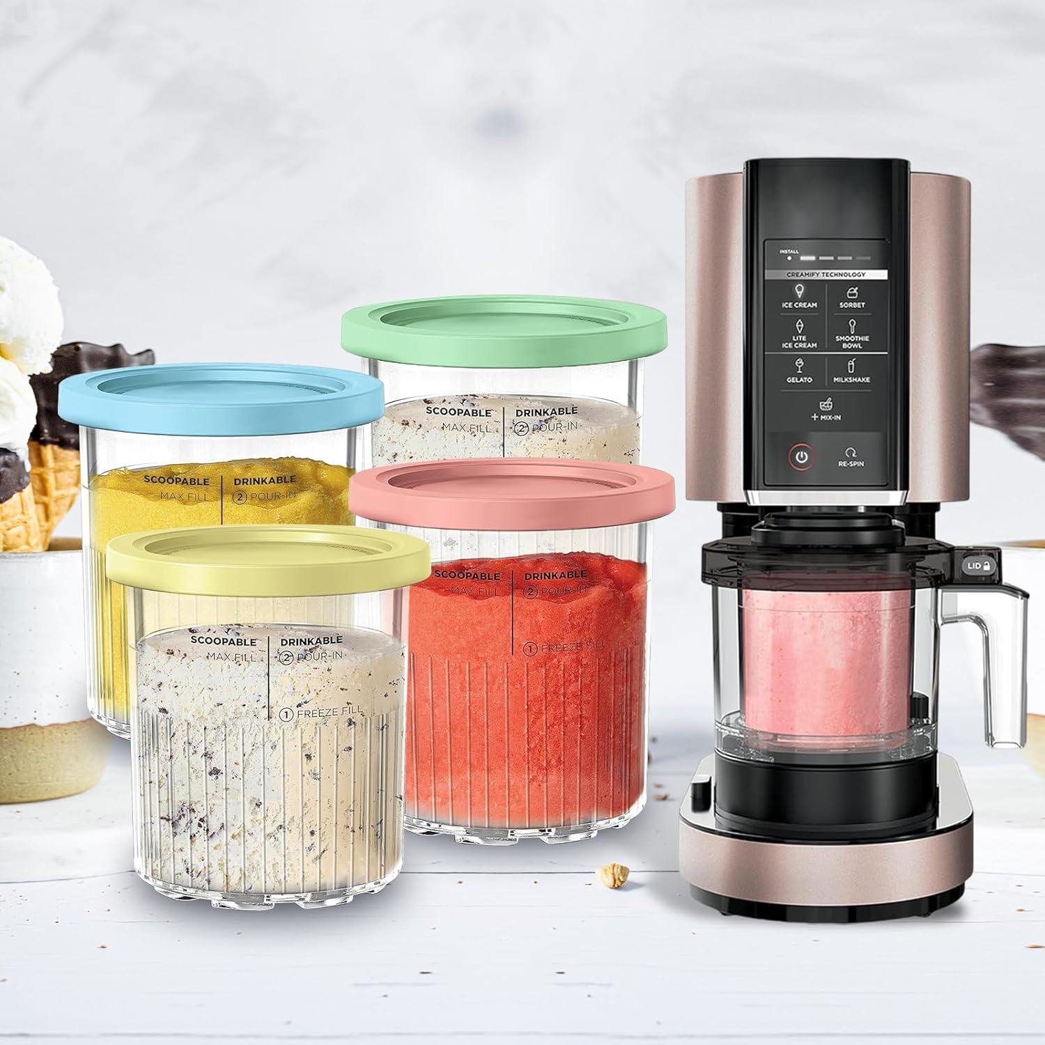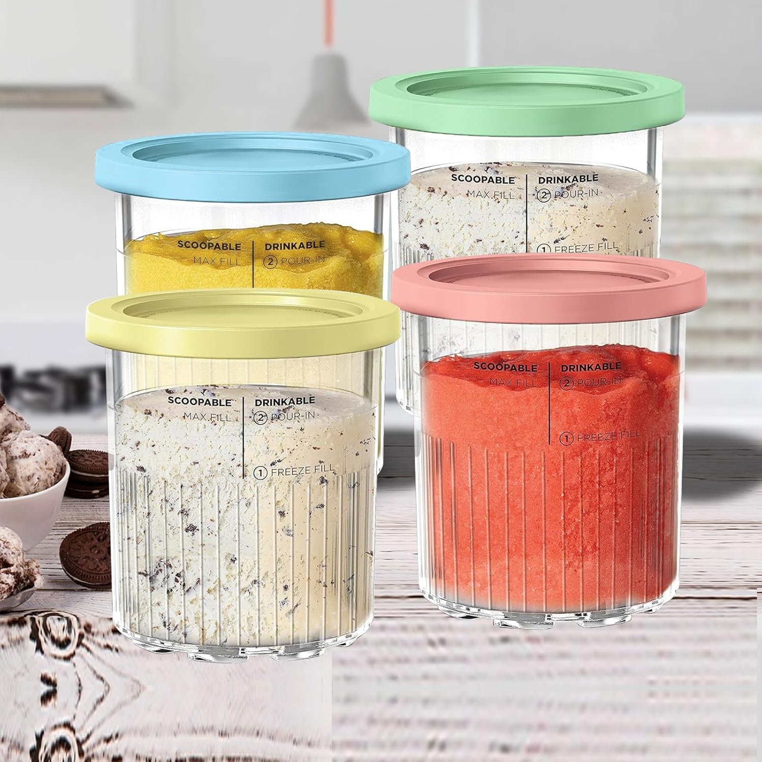4-Pack with Color Variety: Includes four differently colored containers and lids (4 pints total) to easily customize and organize flavors—ideal for storing ice cream, smoothies, milkshakes, yogurt, sorbet, or other frozen snacks for family and friends.