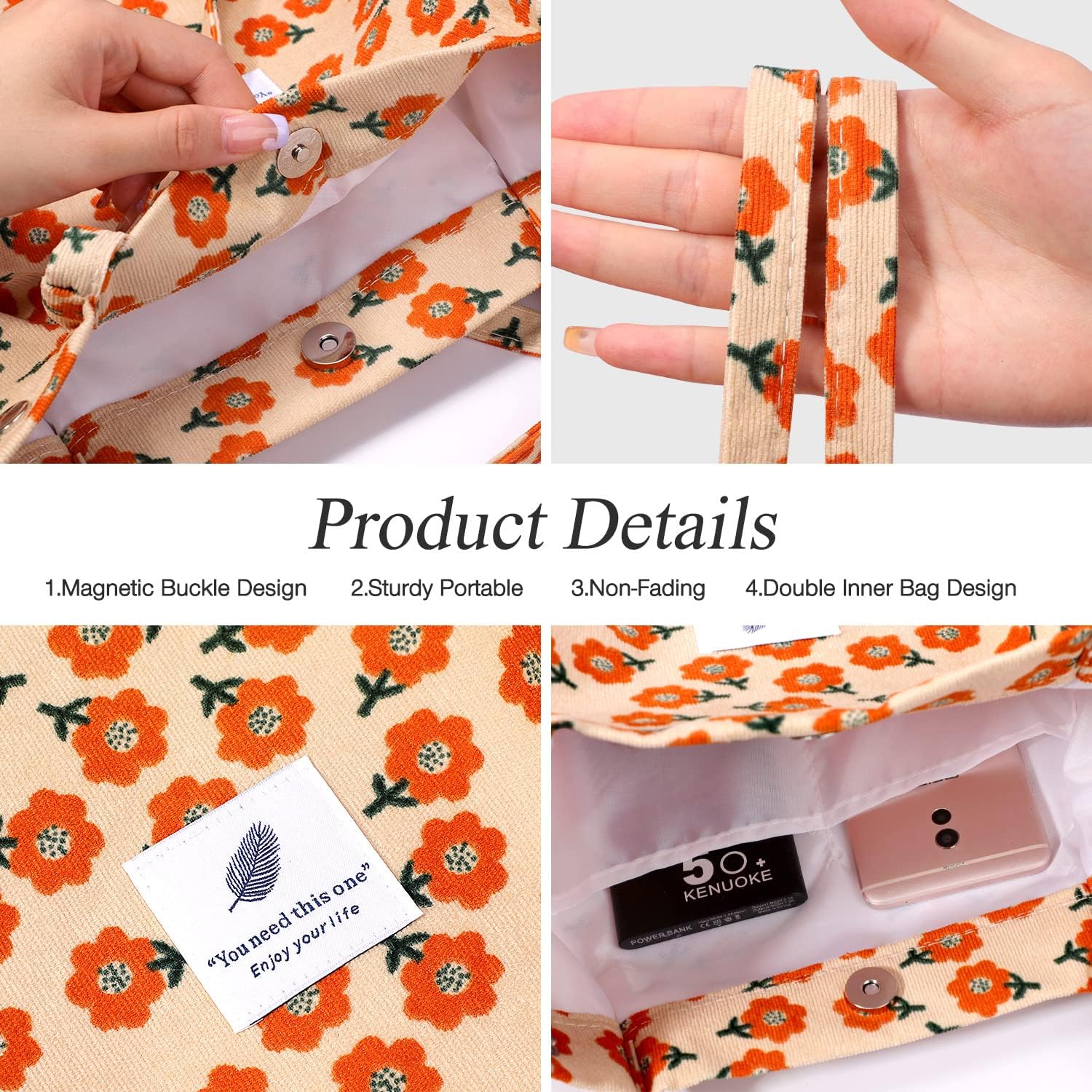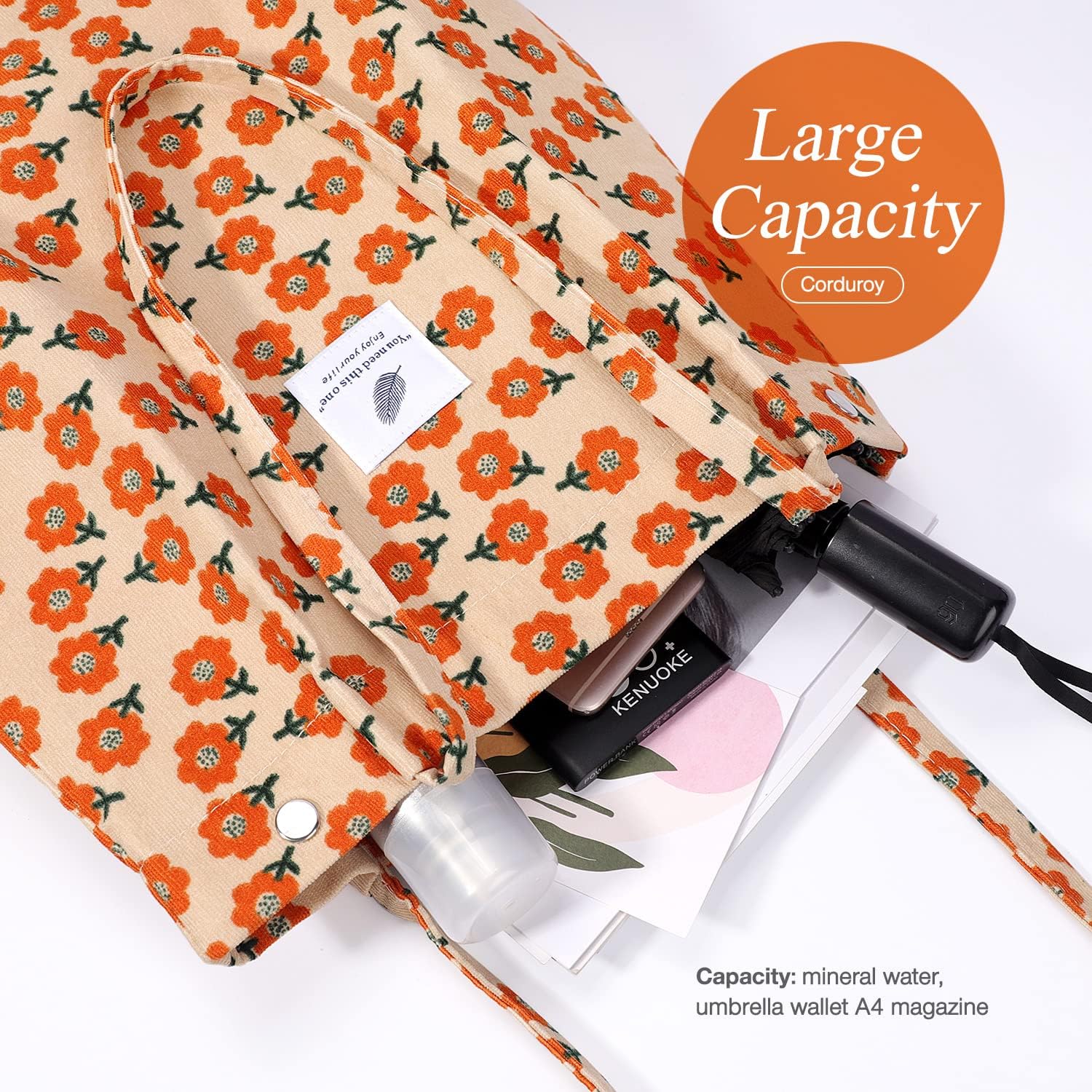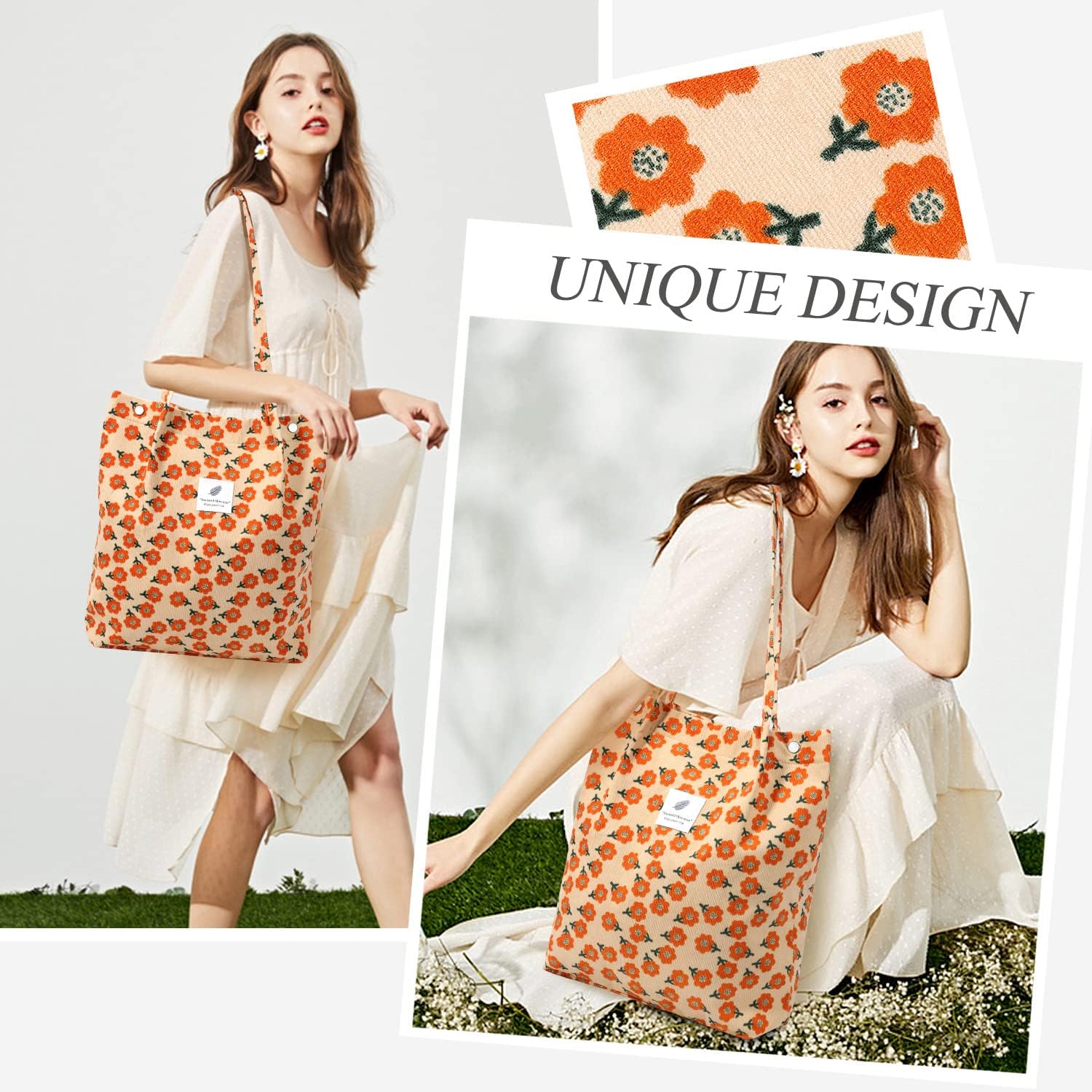 Corduroy Tote Bags for Women, Large Capacity Tote Purse Reusable Grocery Shoulder Bag with Inner Pockets