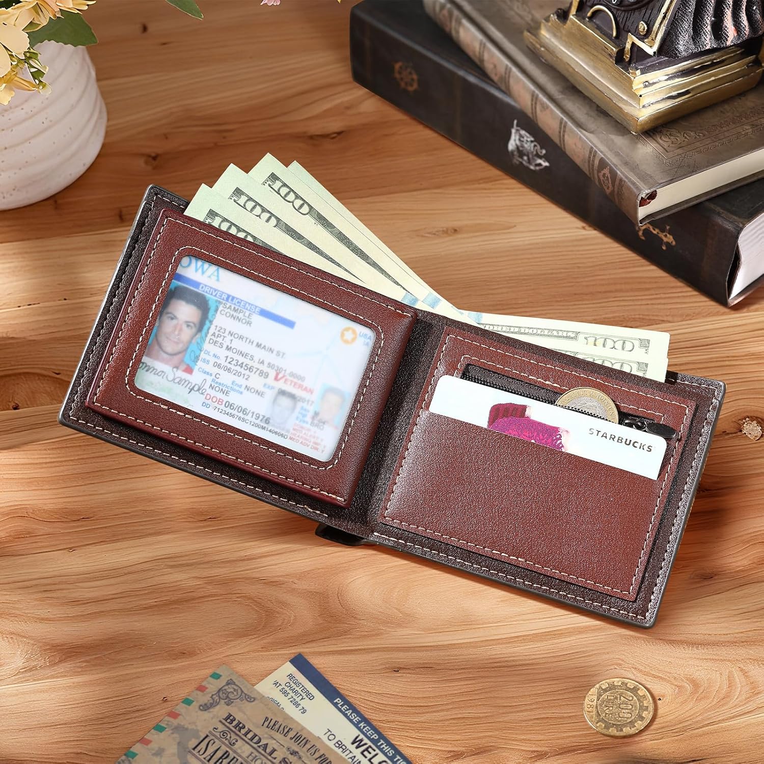 Large capital wallet: The slim wallet contains 6 card slots for credit cards and ID cards; 2 cash slots; 1 transparent photo window for ID cards and photos; and 1 coin pocket with zipper for coins. Meet the needs of travel, business, daily and other occasions.