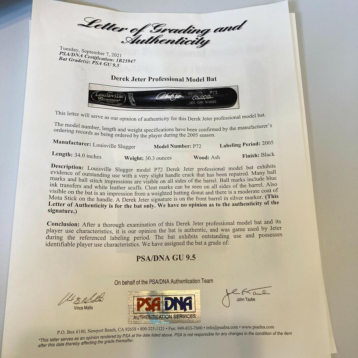 Derek Jeter Signed 2005 Game Used Baseball Bat PSA DNA 9.5 New York Yankees . If a product is unsigned or non game-used, a hologram will not be included. Derek Jeter memorabilia. New York Yankees memorabilia.