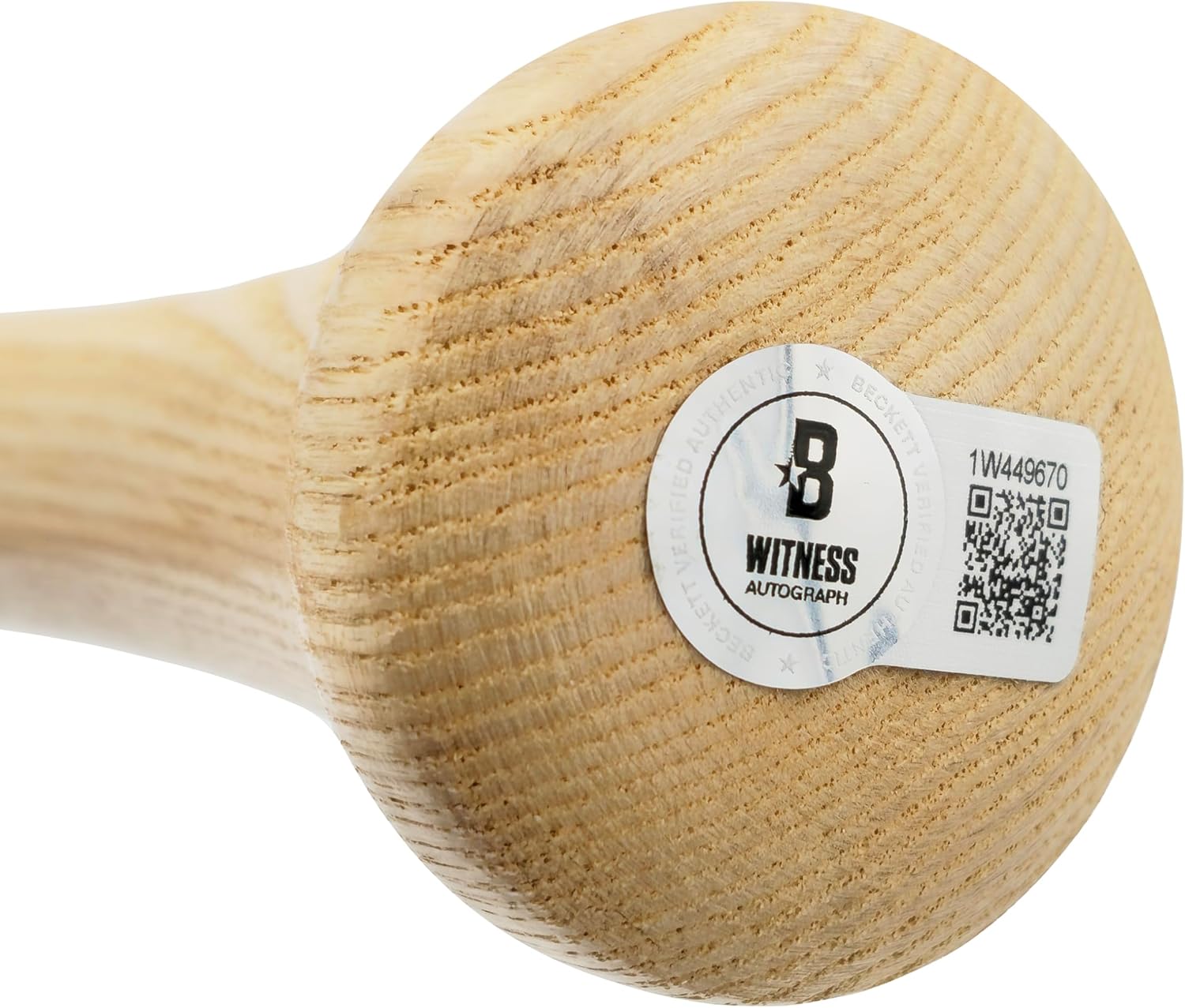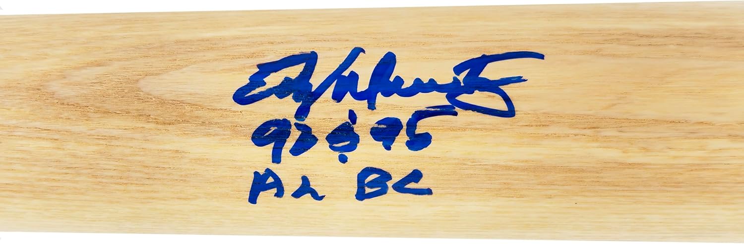 This is a Blonde Slugger. .Louisville Pro Stock Baseball Bat that has been hand signed by Edgar Martinez. This item was inscribed “92 & 95 AL BC.” This item has been witnessed and certified authentic by Beckett Authentication (BAS) and comes with their tamper-proof witness sticker.