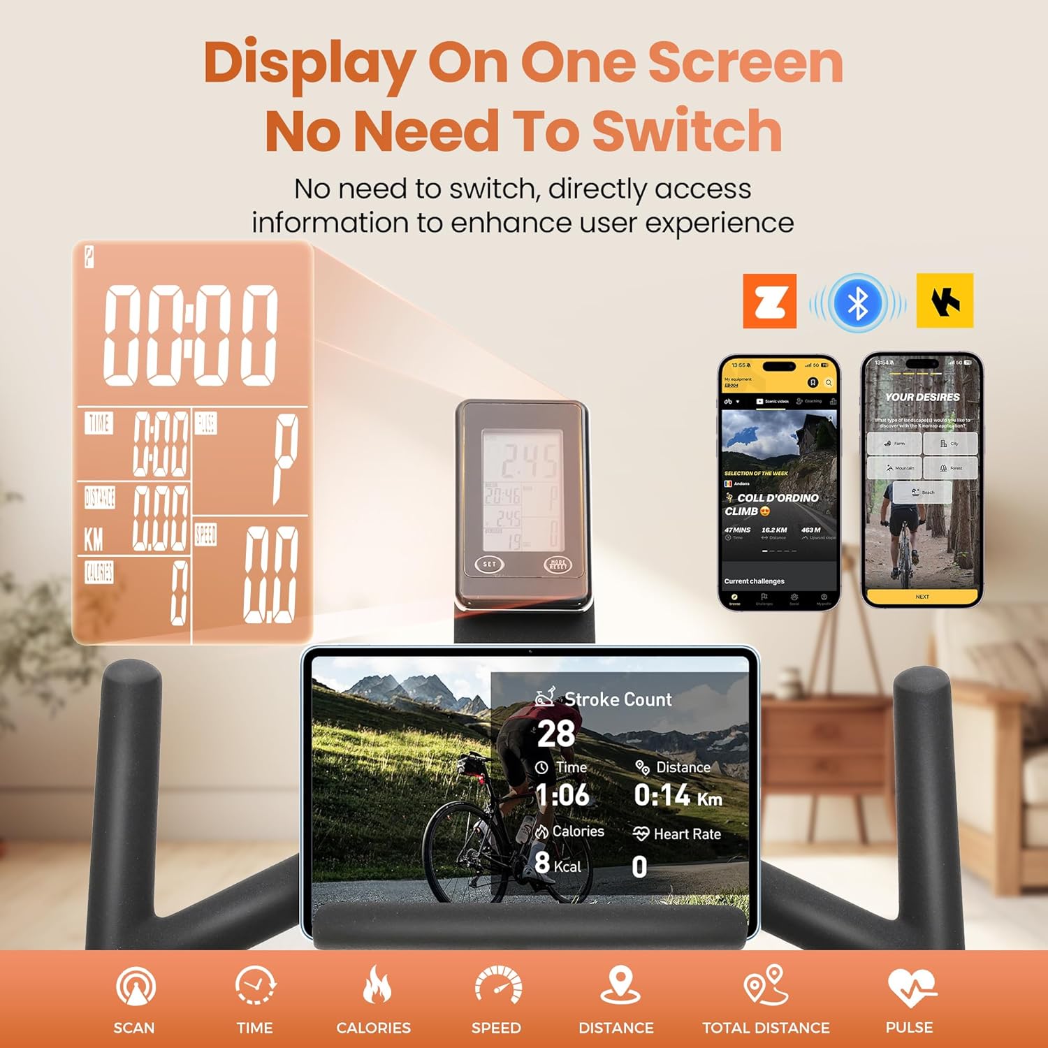 【Thoughtful Design】: Tablet Holder holds tablets and mobile phones, allowing you to listen to music or watch videos while exercising.In addition, the transport wheels make it easy to move the bike with ease and effort