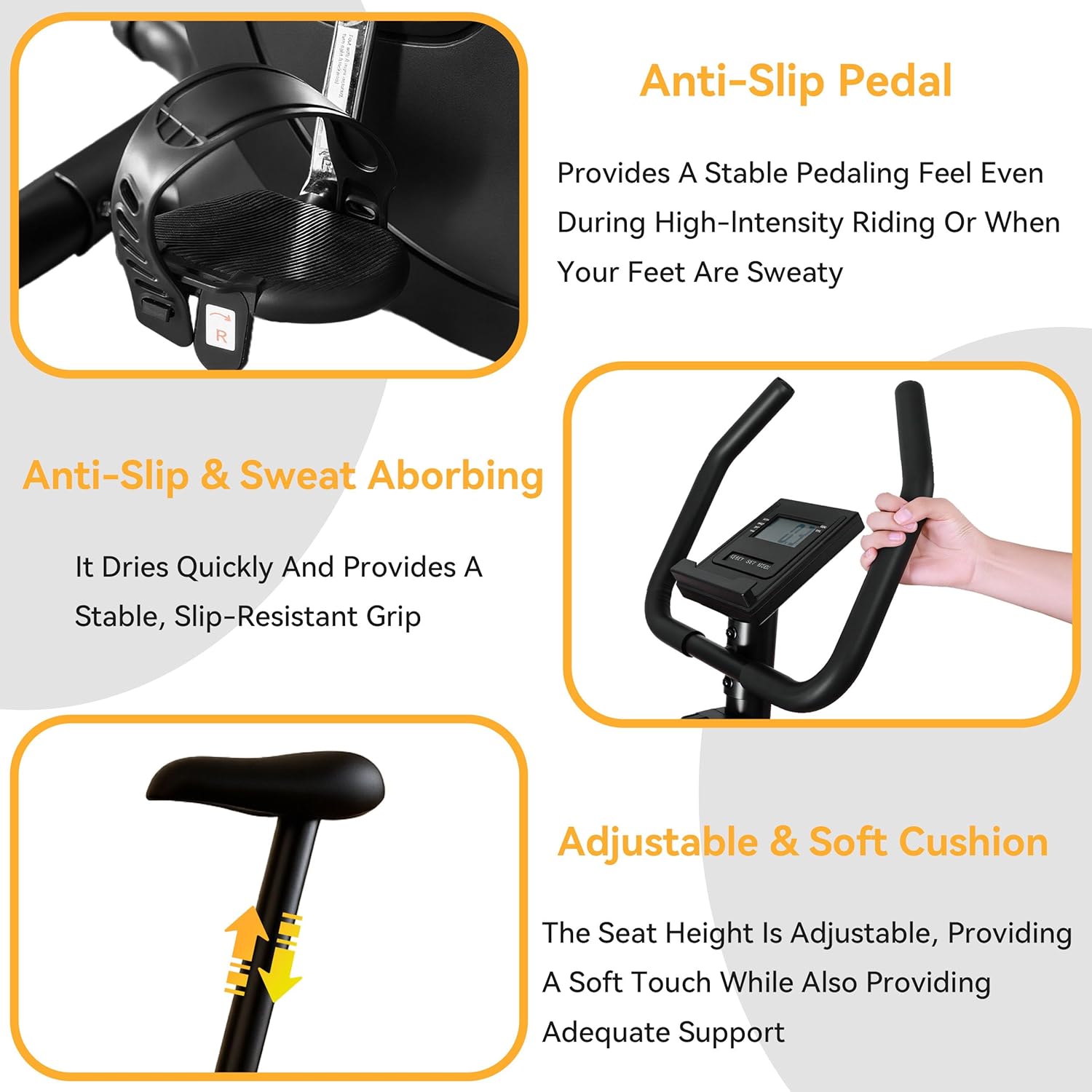 Compact & Durability Design: This exercise bike doesn’t take up too much space, extremely suitable for small living room, with 265LB weight capacity, even during intense workouts, our exercise bike will provide a sturdy and safe exercise experience.
