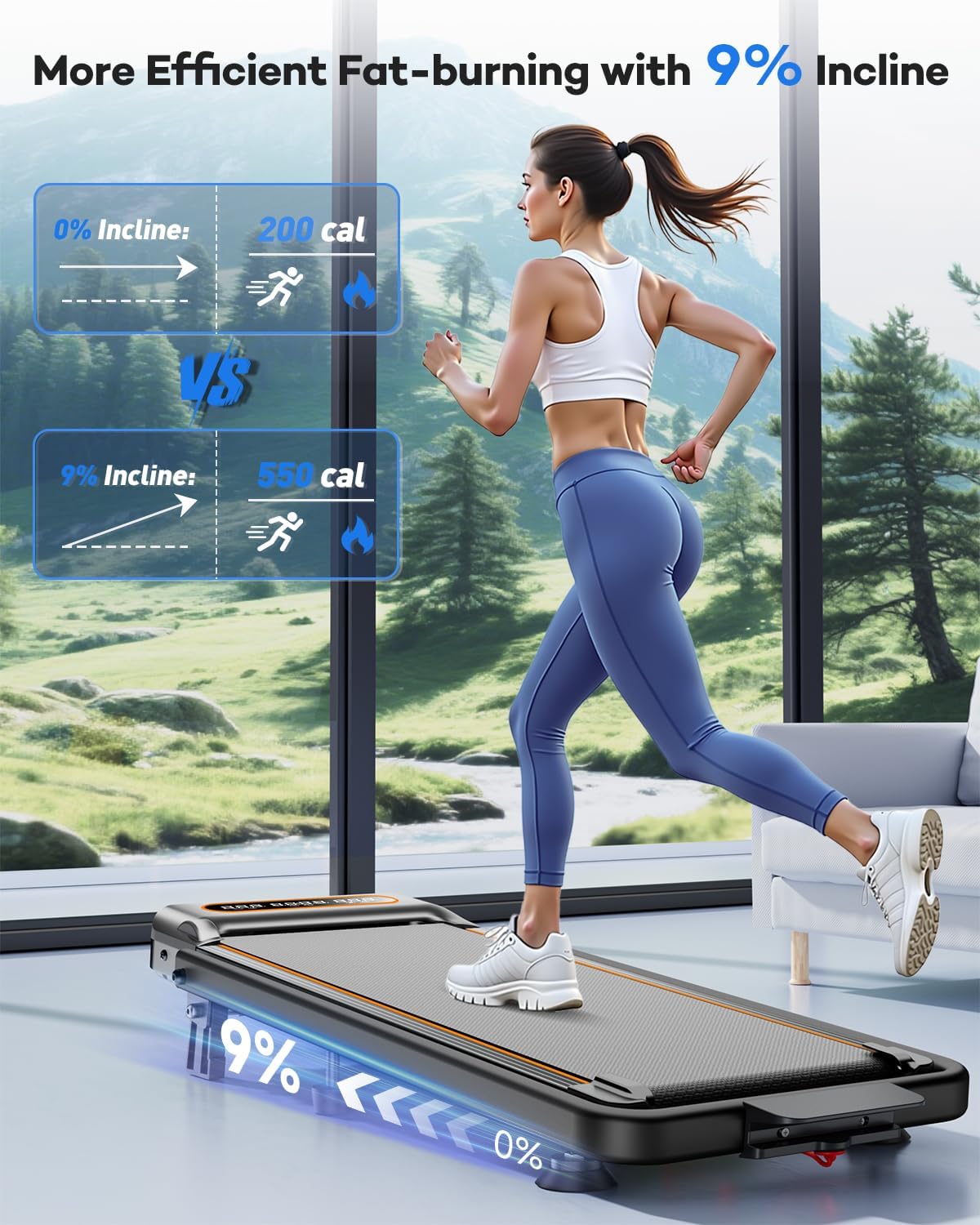 Easy to install: With 95% pre-assembled, simply unbox and start your workout immediately. Your walking pad treadmill with incline also comes fully equipped with phone holder, safety key, tools, and manual for hassle-free setup.