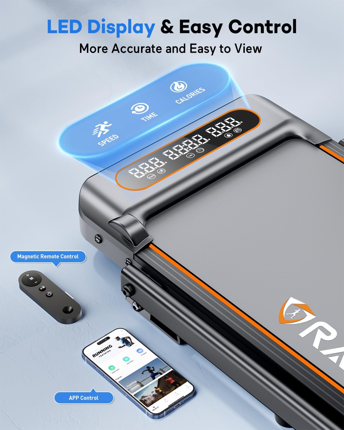 Smart Control & LED Display: The bright LED screen and fitness app track key metrics – speed, calories, time, and distance – while letting you customize workouts and connect socially. Easily adjust speed anytime with the included remote for seamless workouts.