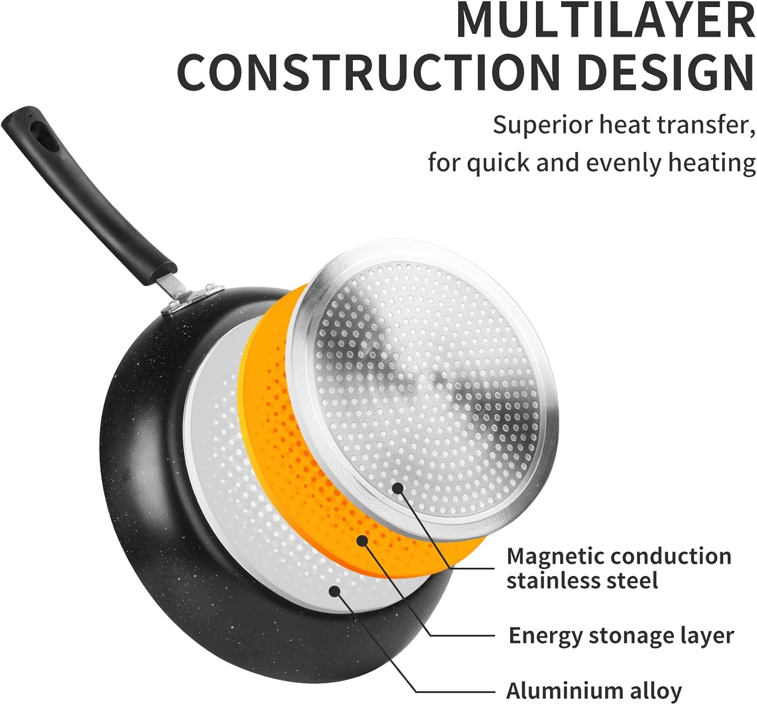 Multi-Piece Set: Includes 8 inch, 9.5 inch, and 11 inch frying pans for versatile cooking.