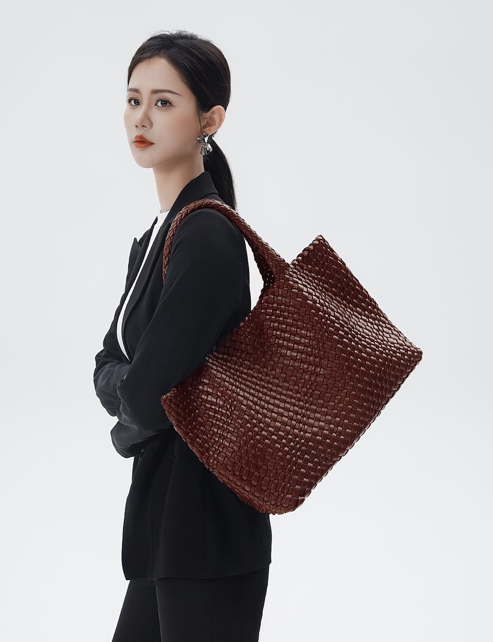 Puxvnizo woven shoulder bags are made of 100% selected vegan leather.