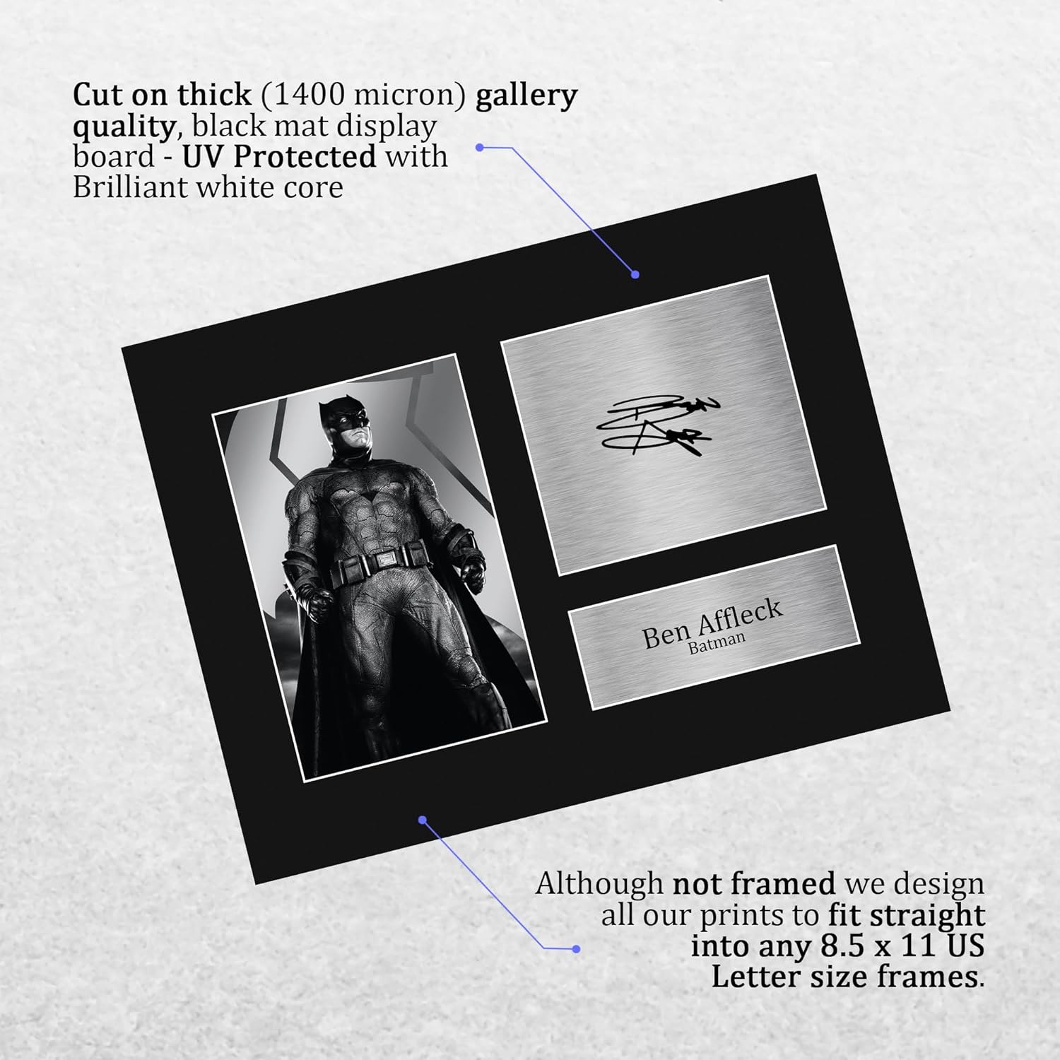 Professionally made in our studio, this Ben Affleck display makes for an ideal gift idea. This laser printed quality photograph is mounted in a precision cut three windowed acid-free matt black display board. To the left of the display there is the main image. To the right of the display there are two metallic effect plaque areas for printed copies of the name and autograph signature. These mounts also come with a ridgid backing board making them very sturdy and can be displayed or hung as they are. Alternatively we offer a framed version too. Lightweight, but of the highest quality, these make the ideal Christmas/Birthday gift for fans of all ages, and best of all, they definitely won’t break the bank!