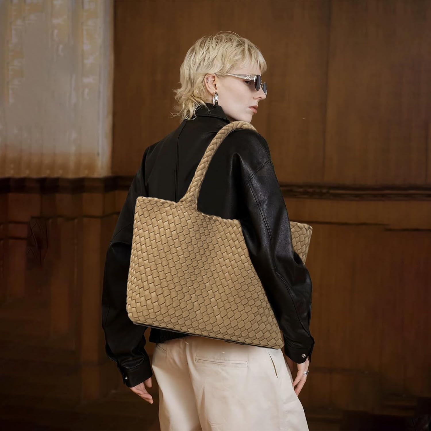 Each woven bag has a spacious compartment that easily holds your daily essentials including iPad, Mac books, folding umbrella, cosmetics, water bottles and everyday items. It has a removable woven purse that can hold some small valuables such as wallets, keys, phones, power banks and more.