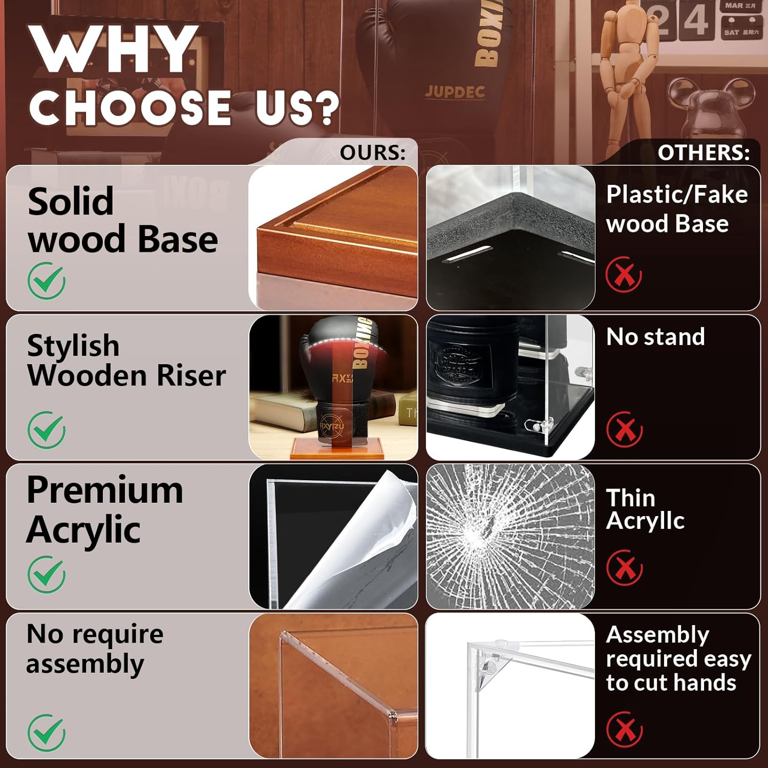Excellent UV Protection – Your gloves deserve to shine as brilliantly as the day you wore them! With our premium acrylic protective cover, you won’t have to worry about yellowing, aging, or peeling due to sun exposure stealing their vibrancy. Proudly display them at home or in the office—our UV protection ensures your gloves stay bold, pristine, and ready to inspire for years to come. It’s like having your own museum exhibit—only better!