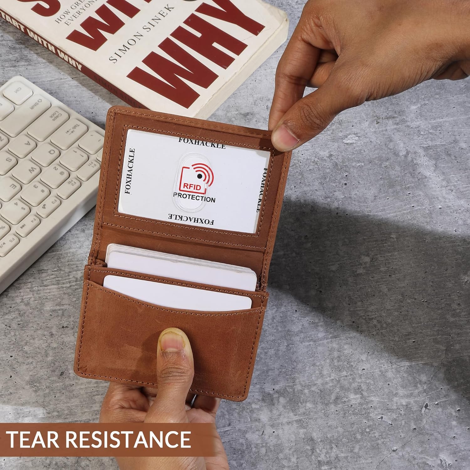 PREMIUM FULL GRAIN LEATHER: Crafted from the Highest Quality Cowhide, This Slim Business Card Holder Wallet Boasts a Luxurious Feel, Achieved Through Vegetable Tanning for a Soft, Supple Texture.