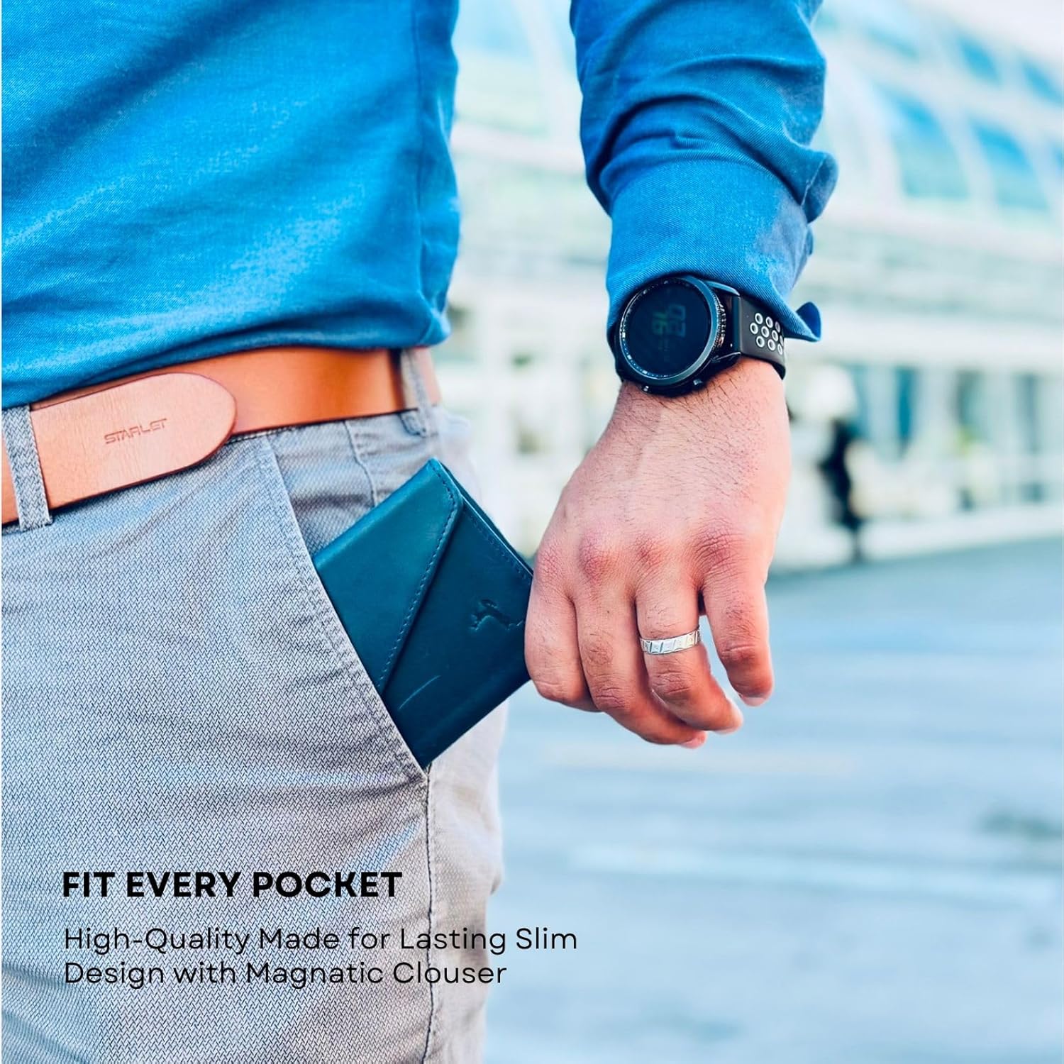 CONVENIENT MAGNETIC CLOSURE: The secure magnetic closure of our mens wallet keeps your cards and cash safely in place while allowing quick access when needed. Our RFID wallet for men is a great option for those who want a men’s wallets that is both secure and efficient.