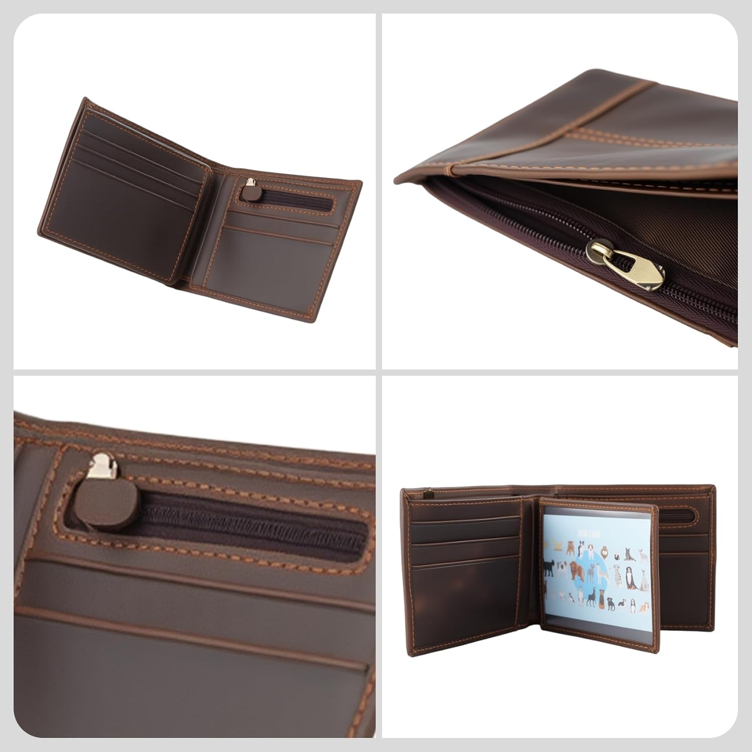 【ZIPPERED UTILITY】Secure zipper coin pocket stores change, keys, or small valuables without adding noticeable bulk. A minimalist wallet and card holder for men, it traps loose items so your bifold stays slim for travel, commuting, and nights out