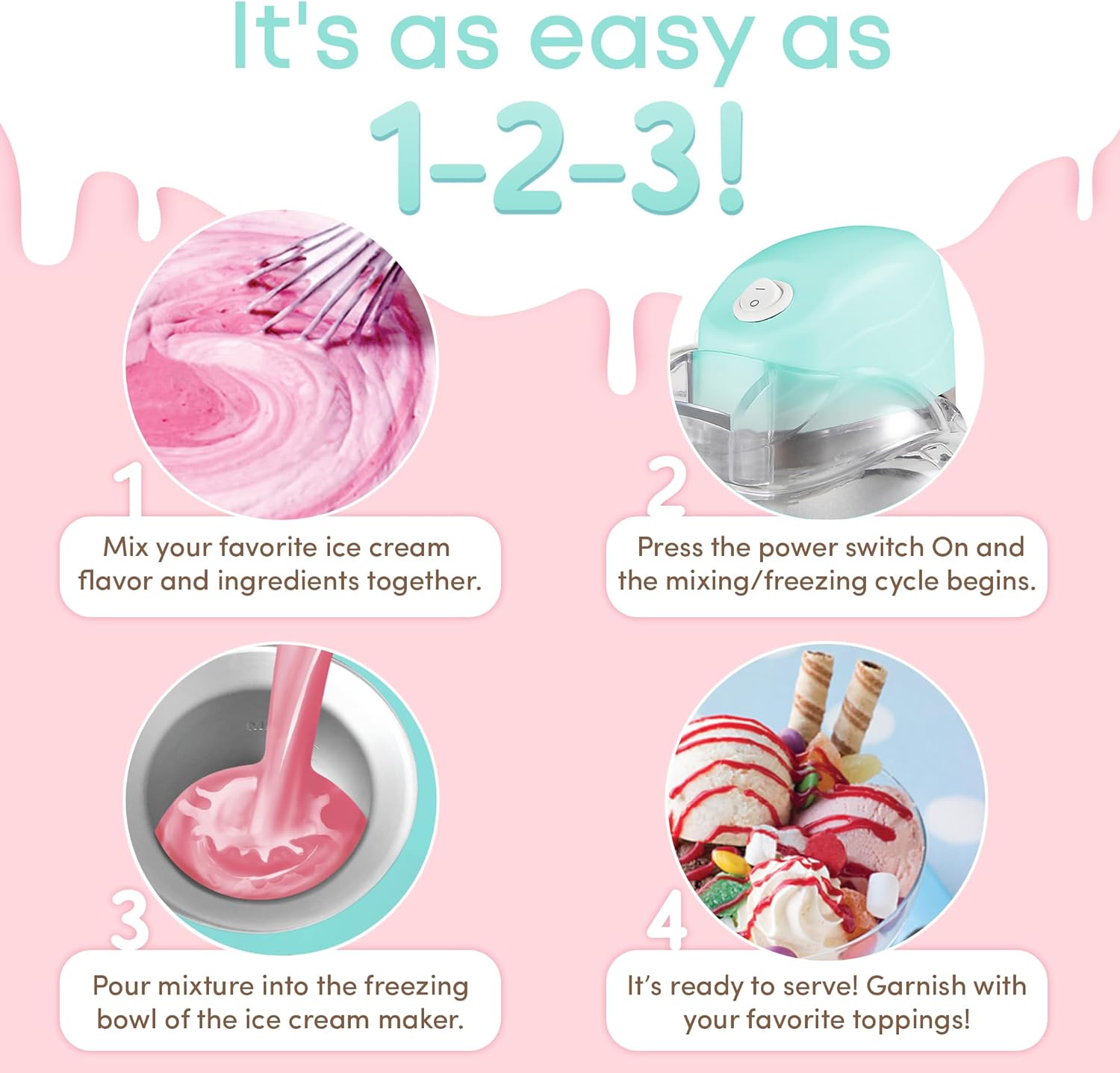 QUICK & EASY TO USE: The ice cream and dessert maker is simple to use. Simply freeze the bowl overnight, then add the ingredient mixture into the machine, push a button and you’ll have a tasty dessert in a short time. No chemicals, alcohol or salt needed.