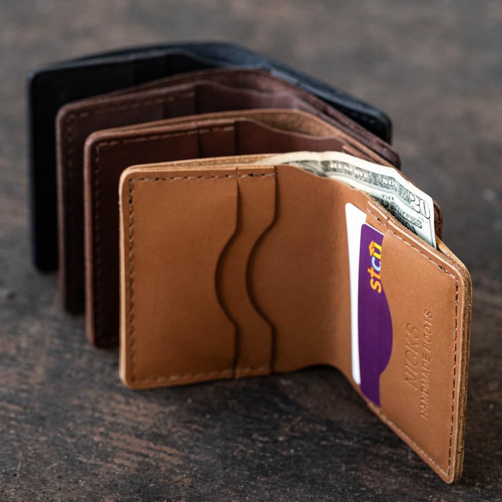Experience the enduring quality of the Nicks Boots Leather Billfold Wallet, handcrafted in the USA from premium full-grain American leather. This rugged and classic design offers ample space for your essentials and is built to last for years to come. A testament to American craftsmanship and a perfect everyday carry.