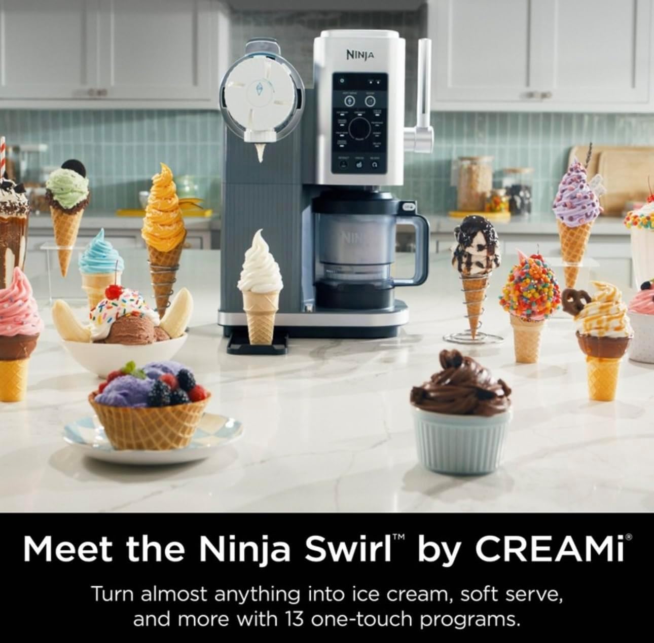 The Ninja CREAMi Swirl turns almost anything into ice cream, soft serve, and much more at the touch of a button. Turn your countertop into an ice cream shop with Creamify Technology—now with soft serve. From one-ingredient fruit sorbets to protein-packed, low-calorie desserts, create customizable treats as unique as you are. Customize flavor, control ingredients, and choose classic scooped or swirled—the possibilities are endless.