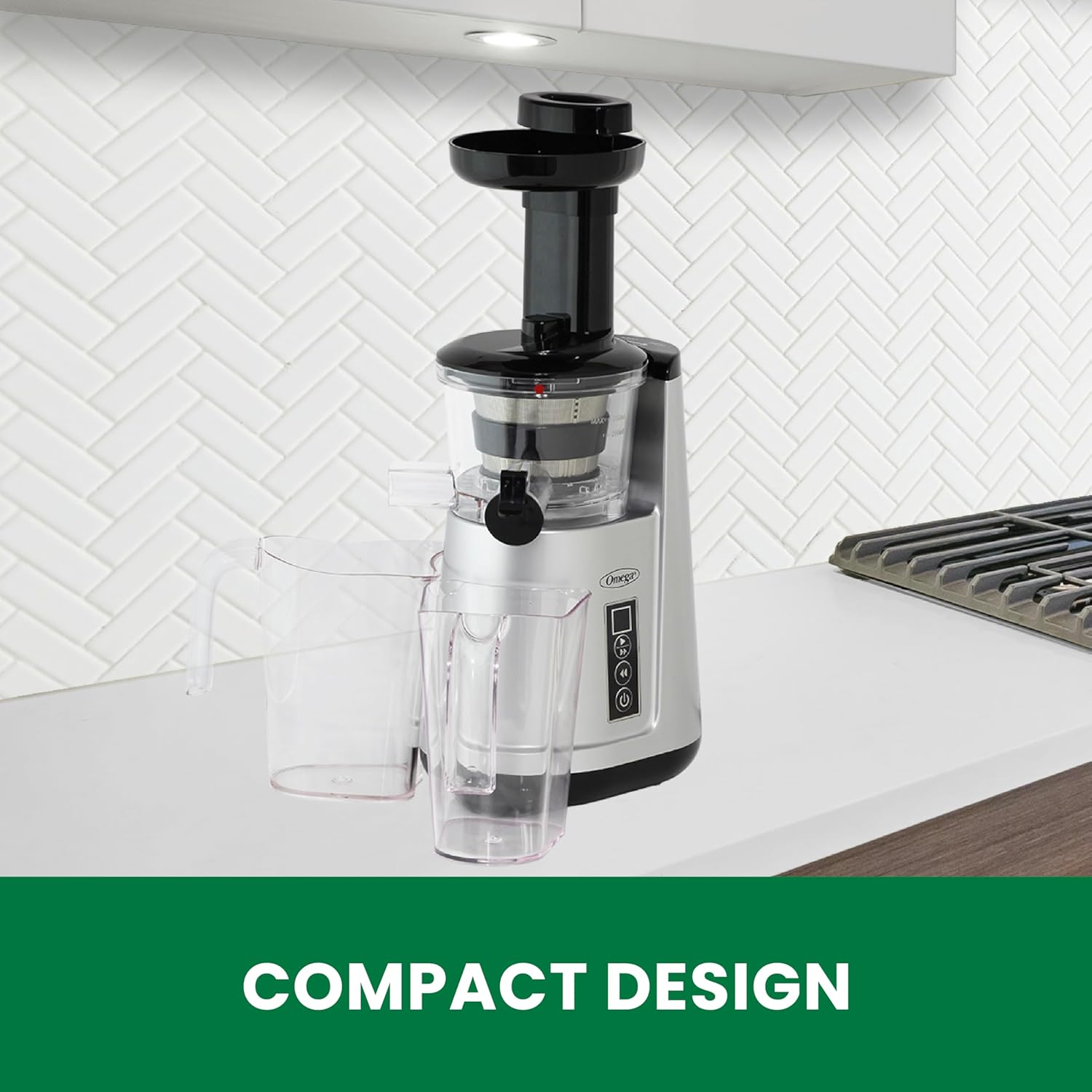 The JC3000SV13 Omega low-speed juicer operates at a super-low speed of 45-65 RPM. A powerful 150 W motor and reduction gears work together to produce twice the crushing force of most vertical slow juicer cold press machines. This juice extractor machine comes equipped with a powerful 3-stage auger and a low-speed operating system that rapidly cuts and squeezes ingredients to yield maximum amounts of juice. This process also breaks down fiber to a palatable level for less pulp and a smoother nutrient-rich juice. Natural immune boosters, Omega Juicer Machines deliver a potent dose of antioxidants to boost and support overall health and immunity. Cold press juicing is one of the most effective ways to easily access nutritious enzymes that help to improve immunity and overall health. Don’t eat your fruits and veggies—juice them with the help of this masticating juicer machine! Get a day’s worth of vitamins in 1 delicious juice with the help of this compact juicer machine!