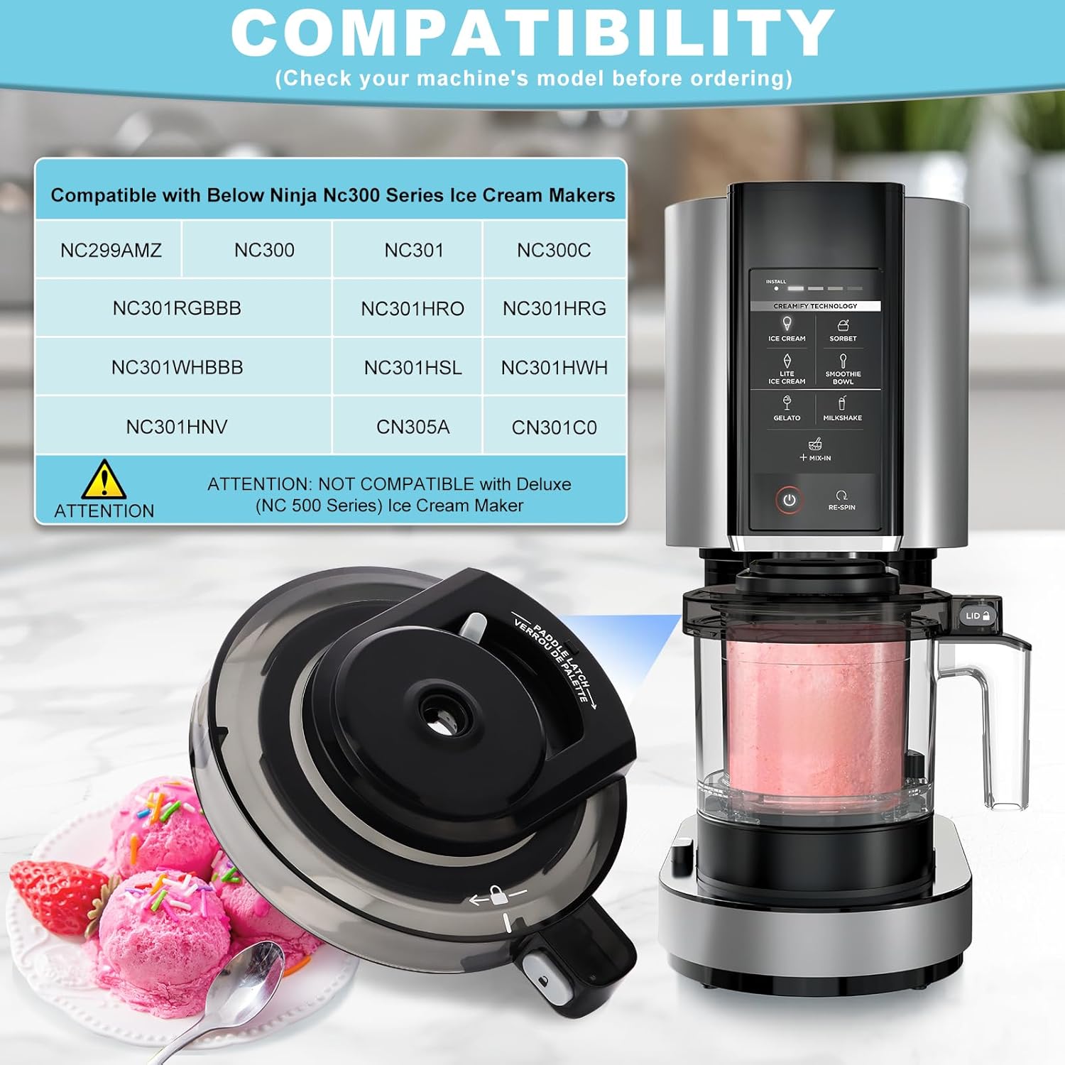 Perfect Compatibility: This Outer Bowl Cover is compatible with Ninja Creami NC299AMZ, NC300, NC300C, NC301, CN301CO, CN305A, NC301HNV, NC301HRD, NC301HRG, NC301HSL, NC301HWH, NC301RGBBB, and NC301WHBBB. Note: Not compatible with Deluxe (NC500 series) ice cream makers.