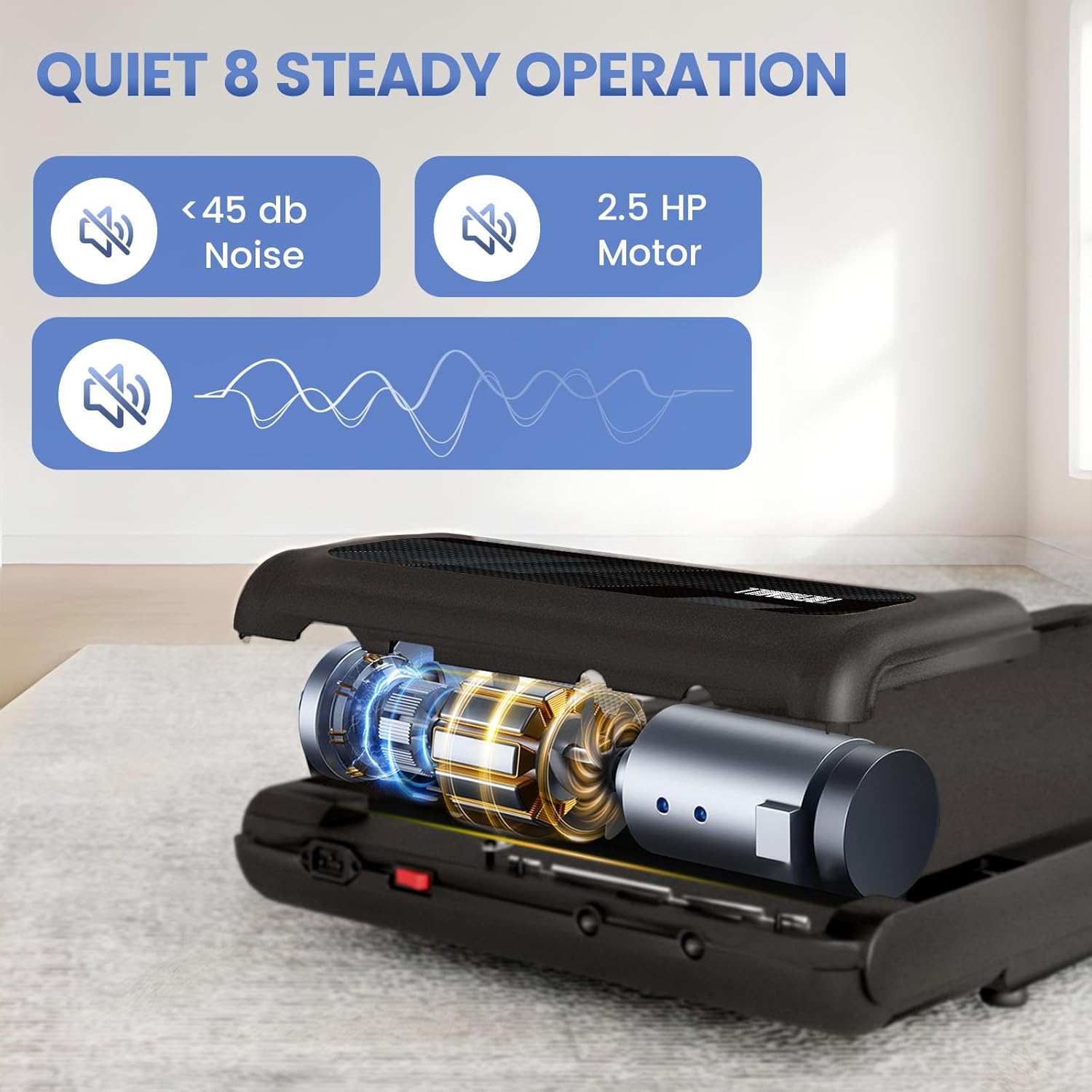 Powerful Motor: Experience the strength of a 2.5HP motor, designed to support users weighing up to 300 lbs. This motor provides reliable performance for both walking and running, helping you achieve your fitness goals effectively.